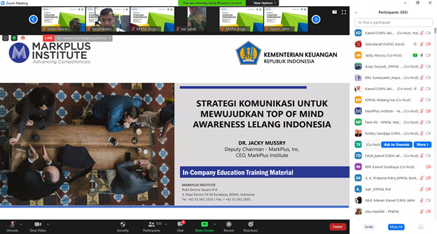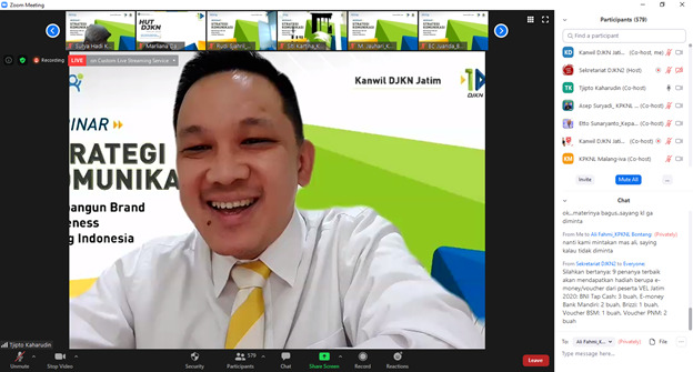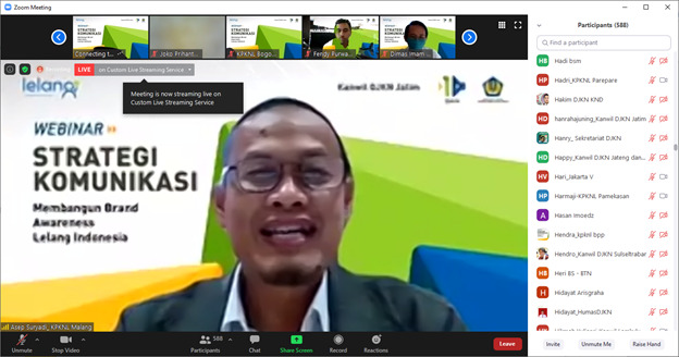 Surabaya - Bagi instansi pemerintah yang memiliki hubungan langsung dengan masyarakat, membangun brand agar dapat dengan mudah dikenali masyarakat merupakan suatu keharusan. “Sebagai penyedia layanan publik, sesungguhnya kerja pemerintah tidak boleh tercerai dari branding,” ujar Direktur Jenderal Kekayaan Negara Isa Rachmatarwata dalam Web Seminar (webinar) Strategi Komunikasi Membangun Brand Awareness Lelang Indonesia yang diadakan dalam rangka Pembukaan Virtual Expo Lelang Jawa Timur 2020 pada Senin (02/10) secara daring melalui aplikasi zoom meeting.
