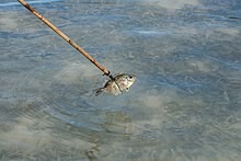 ditebar dan pada pinggiran jaring diikat daun kelapa muda sebagai tanda tidak