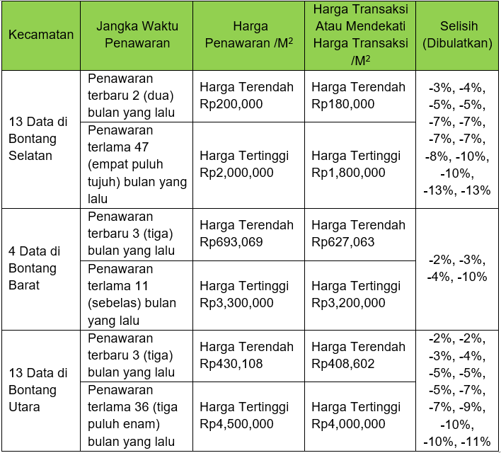 penurunan harga penawaran mendekati harga transaksi yang terjadi di Kecamatan