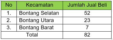 jumlah data transaksi jual beli yang lebih sedikit dibanding Kecamatan Bontang