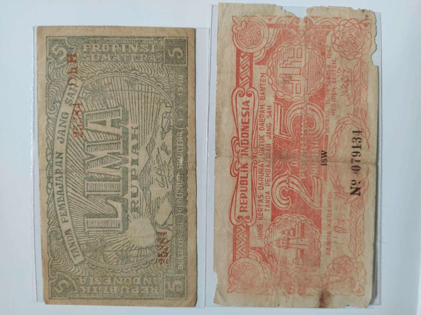 adalah ORIDA Banten dengan emisi tertanggal 15 Desember 1947. Saat agresi militer Belanda I