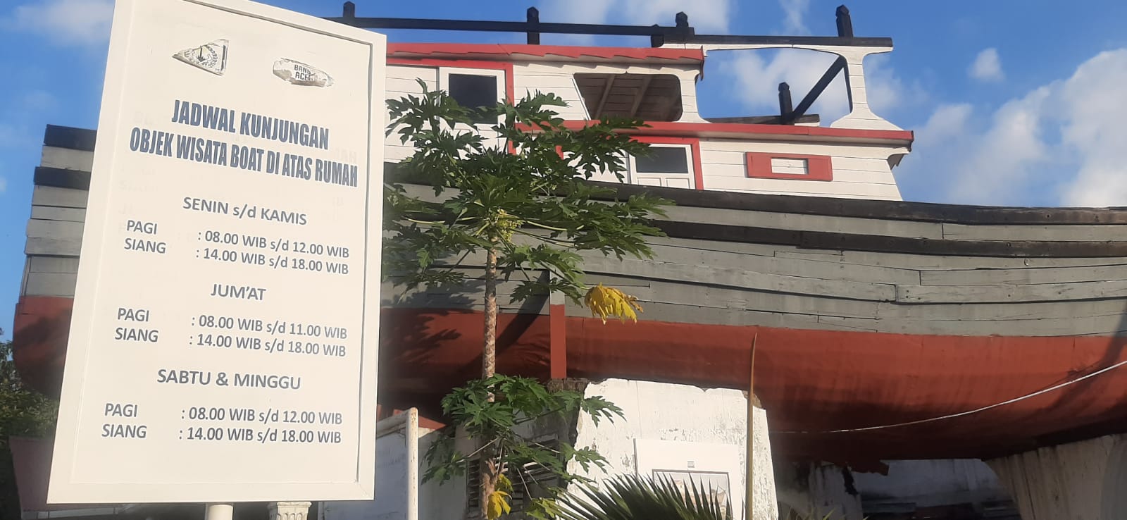 di atas rumah ini menjadi destinasi wisata mengenang peristiwa tsunami. Untuk