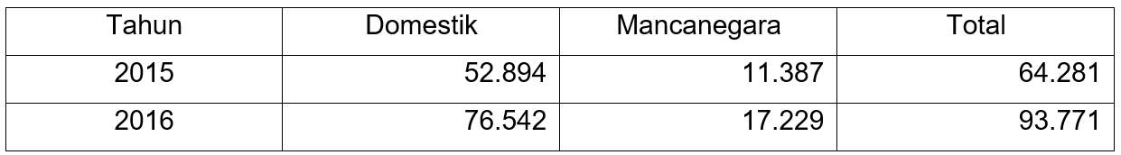 Tabel 1.1. Jumlah Pengunjung Objek Wisata Gereja Ayam Bukit Rhema