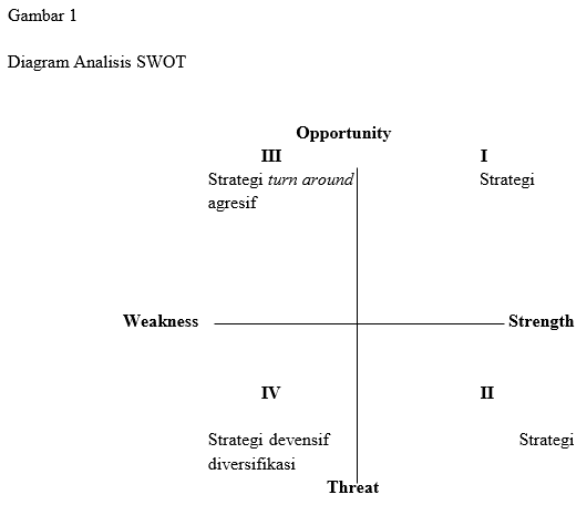 Dengan menggunakan matrik diagram analisis SWOT maka dapat digambarkan secara jelas mengenai ancaman dan peluang yang disesuaikan dengan kekuatan dan kelemahan yang dimilikinya.13