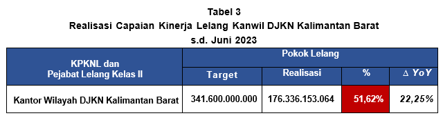 realisasi pokok lelang per Juni 2023 pada 64 KPKNL belum sesuai target atau