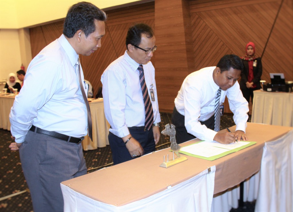 Selanjutnya kegiatan dilanjutkan dengan penandatangan kesepakatan kerja sama peningkatan lelang antara seluruh Kepala PT. BRI (Persero) Cabang se-Provinsi Bangka Belitung dengan Kepala KPKNL Pangkalpinang, sekaligus menutup sesi I Rapat Koordinasi tersebut. Selanjutnya Sesi II akan dilanjutkan dengan pemaparan Materi Lelang Ekseksui Hak Tanggungan oleh Kepala Seksi Lelang KPKNL Pangkalpinang, Arief Nugroho.