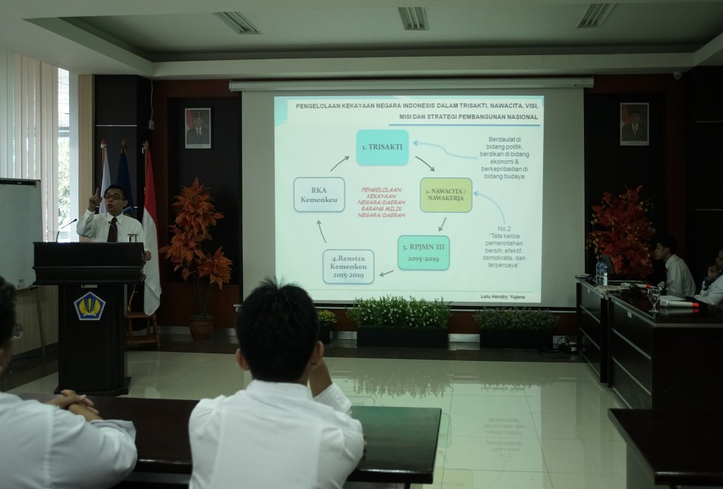 Sebelumnya Kepala Pusdiklat Kekayaan Negara dan Perimbangan Keuangan Lalu Henry Yujana juga menyampaikan bahwa pondasi pengelolaan kekayaan negara adalah konsep Trisakti dan Program Nawacita.
