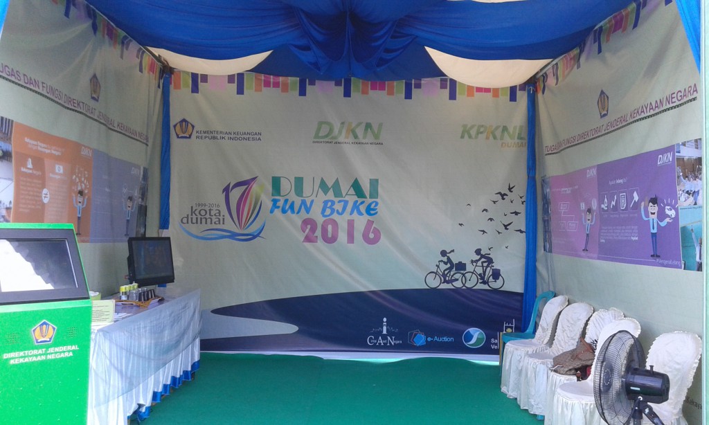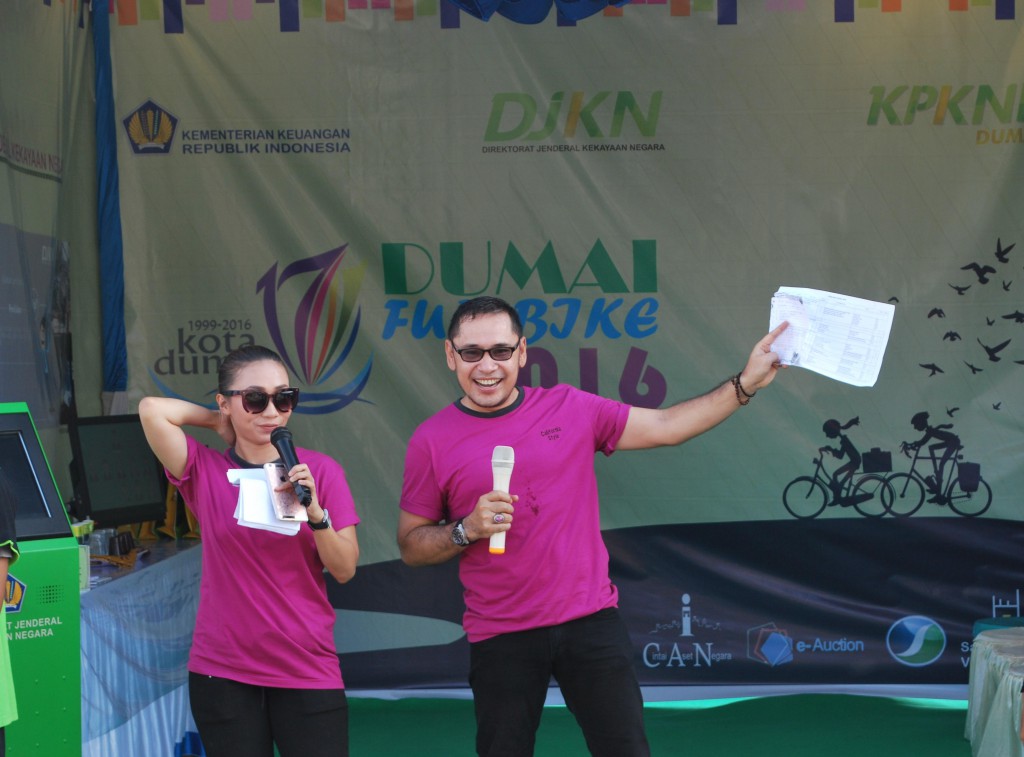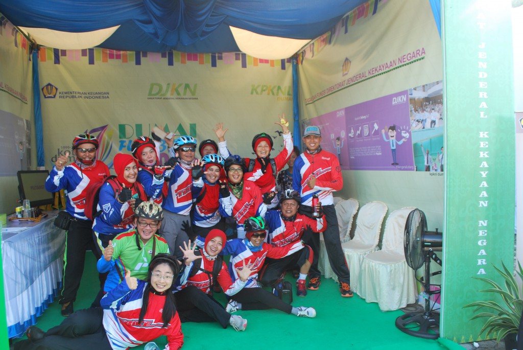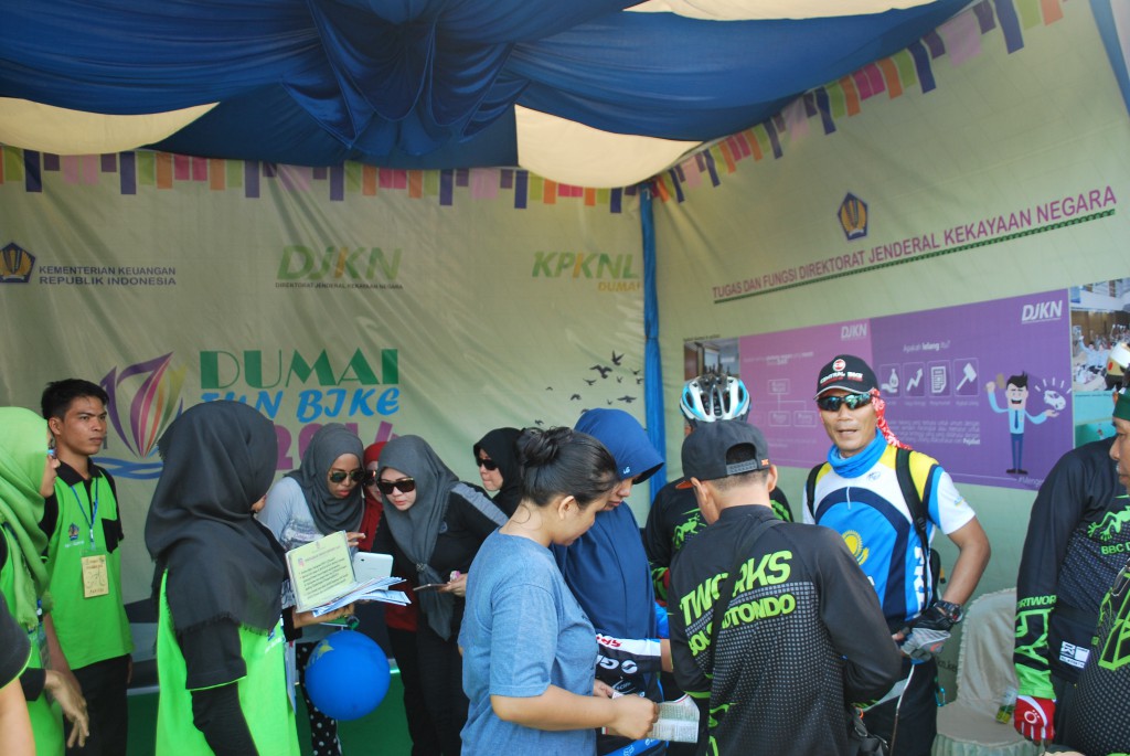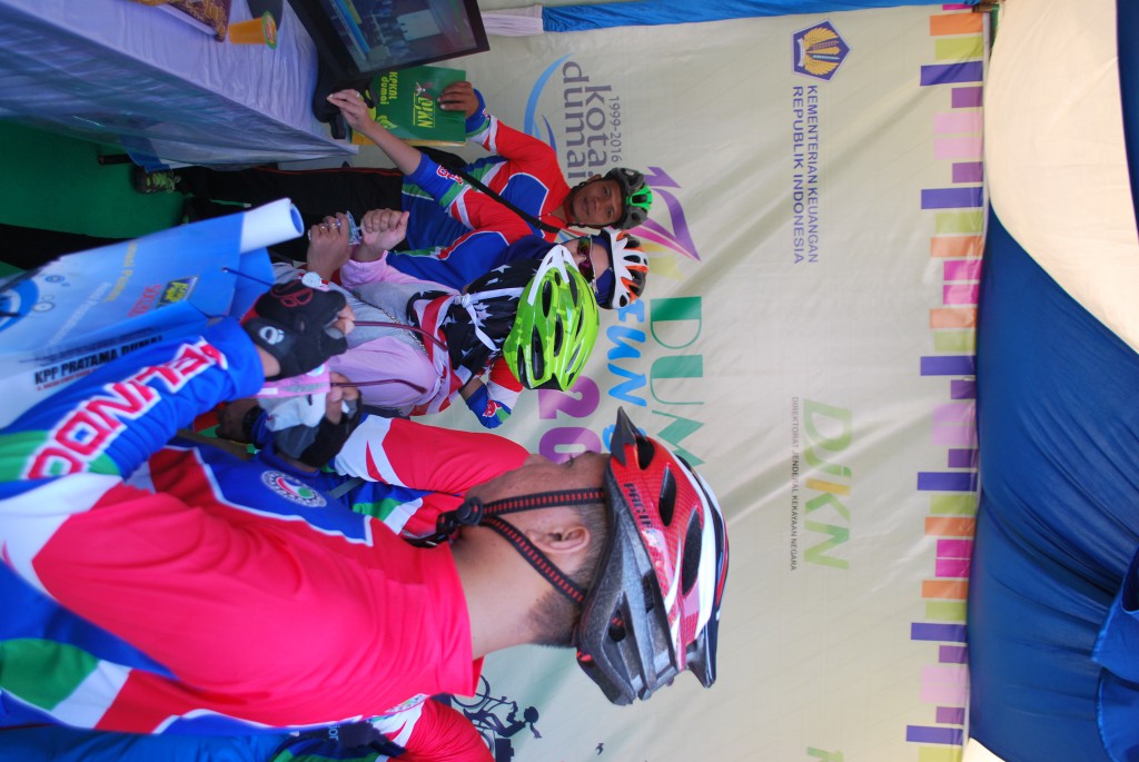 Suasana Minggu pagi 15 Mei 2016 Kota Dumai begitu meriah dengan banyaknya warga bersepeda berbondong-bondong menuju ke halaman Kantor Pelayanan Bea Dan Cukai Tipe Madya Pabean B Dumai untuk mengikuti acara Dumai Fun Bike 2016 guna memperingati hari jadi Kota Dumai yang Ke-XVII. Hari jadi Kota Dumai yang ke-XVII ini bertema “Kita Wujudkan Masyarakat Dumai Yang Makmur dan Madani”. Acara Dumai Fun Bike 2016 diselenggarakan oleh Instansi Vertikal Kementerian Keuangan yang ada di Kota Dumai antara lain: KPPBC Tipe Madya Pabean B Dumai, KPKNL Dumai, KPP Pratama Dumai dan KPPN Dumai. Dengan membentuk panitia bersama yang bernama “Panitia Dumai Fun Bike 2016”. Panitia sepakat disamping menyelenggarakan acara Fun Bike yang diperuntukan kepada seluruh lapisan masyarakat yang berada di Kota Dumai dan sekitarnya acara juga diselingi dengan sosialisasi pengenalan tusi instansi vertikal Kementerian Keuangan. Halaman KPPBC Tipe Madya Pabean B Dumai disamping ada panggung utama sebagai tempat inti acara juga ada empat tenda yang berfungsi sebagai booth untuk keperluan sosialisasi pengenalan tusi masing-masing instansi Kementerian Keuangan. Sekitar pukul 06.30 warga dengan menggunakan sepeda sudah berkumpul di halaman KPPBC Tipe Madya Pabean B Dumai. Berdasarkan formulir pendaftaran “gratis” yang sudah terdata ada sekitar 1.150 orang peserta yang mengikuti acara tersebut. Tepat pukul 07.15 peserta Dumai Fun Bike diberangkatkan oleh perwakilan Walikota Dumai. Berangkat dari halaman KPPBC Tipe Madya Pabean B Dumai peserta Fun Bike melewati jalan-jalan utama di Kota Dumai sampai berakhir kembali ke halaman KPPBC Tipe Madya Pabean Dumai pada pukul 08.30. Sambil istirahat dan menikmati jajanan dan minuman yang telah disediakan, peserta mulai mendatangi booth-booth yang ada. Masing-masing booth siap memberikan informasi baik tusi maupun hal-hal lain yang berkaitan dengan instansi vertikal Kementerian Keuangan. Booth KPKNL Dumai persis berdiri di samping kanan panggung utama dengan ciri khas warna hijaunya ramai sekali dikunjungi warga. Disamping kita mengenalkan tugas pokok dan fungsi KPKNL Dumai, kita juga menyediakan welcome drink dan souvenir menarik bagi peserta yang aktif melihat dan menanyakan serta berhasil menjawab pertanyaan yang disiapkan panitia KPKNL Dumai. Selain itu juga KPKNL Dumai menyelenggarakan foto selfie di backdrop yang tersedia. Panitia KPKNL Dumai menyediakan tiga hadiah menarik untuk tiga foto selfie paling heboh dan paling menarik. Suasana begitu meriah dengan banyaknya pengunjung yang datang silih berganti. Terlihat juga kemeriahan peserta yang mendatangi booth yang lain dari KPPBC, KPP Pratama dan KPPN Dumai.