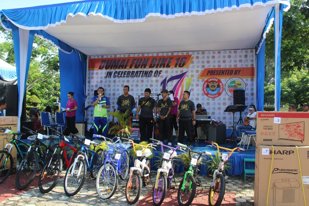 Pukul 11.00, doorprize terakhir telah dibagikan oleh panitia sekaligus sebagai penutup seluruh rangkaian acara Dumai Fun Bike 2016. Dengan acara Fun Bike 2016 dan sajian hiburan, doorprize, sekaligus acara sosialisasi tusi instansi vertikal Kementerian Keuangan membuat warga Kota Dumai di minggu pagi itu begitu ceria, hingga harapan Walikota Dumai bisa terwujud sesuai dengan tema hari jadi Kota Dumai: "Kita Wujudkan Masyarakat Dumai Yang Makmur dan Madani." (Foto : Fadlinur & David; Teks : Moed - Seksi HI)