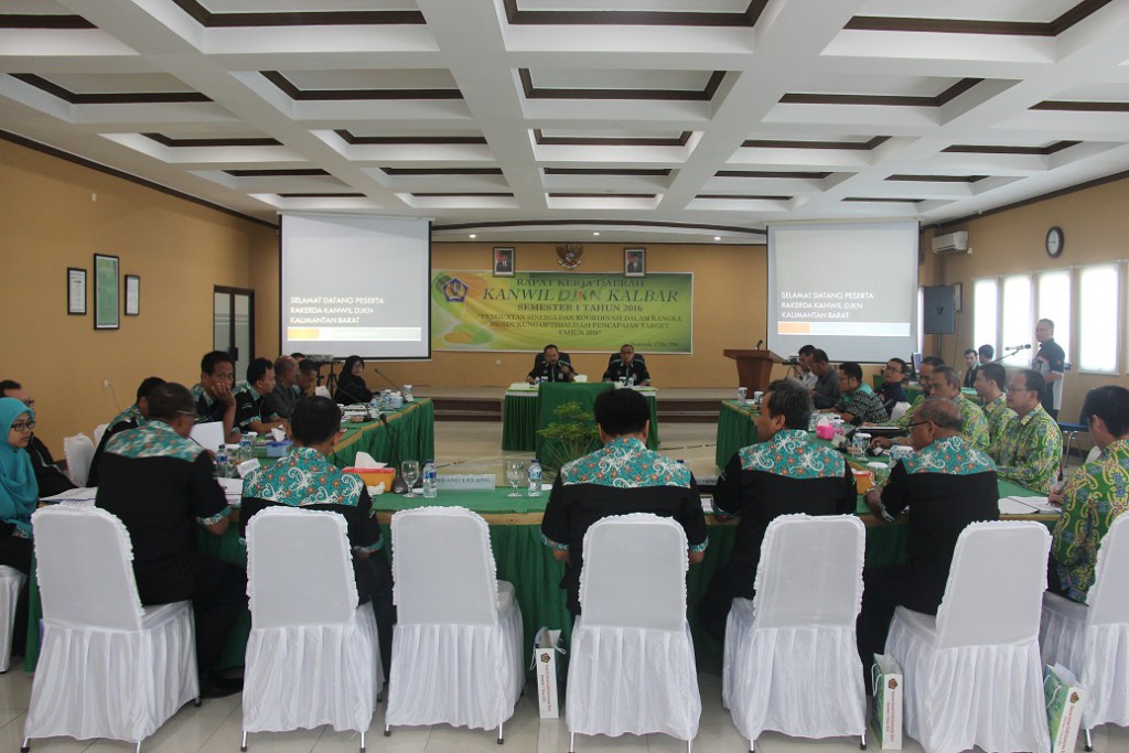 Pontianak - Kantor Wilayah (Kanwil) DJKN Kalimantan Barat menggelar Rapat Kerja Daerah (rakerda) pada 12 -13 Mei 2016 di Aula Kanwil DJKN Kalimantan Barat. Rakerda ini dihadiri oleh Kepala Kanwil, jajaran eselon III, dan eselon IV Kanwil DJKN Kalimantan Barat serta Kepala KPKNL Pontianak dan KPKNL Singkawang yang didampingi beberapa kepala seksi di unit masing-masing. Dengan mengusung tema “Penguatan Sinergi dan Koordinasi Dalam Rangka Mendukung Optimalisasi Pencapaian Target 2016”, rakerda ini diharapkan pencapaian target kinerja tahun 2016 dapat terpenuhi sesuai ekspektasi atau bahkan melampaui ekspektasi tersebut.