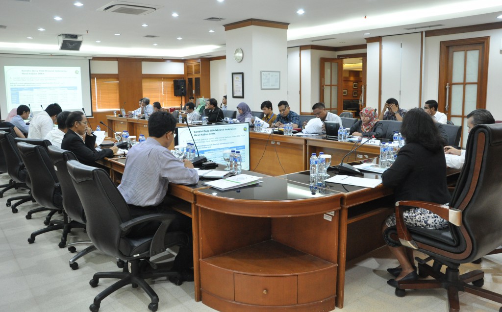 Sedangkan paparan dari perwakilan Badan Geologi Kementerian Energi dan Sumber Daya Mineral Armin Tampubolon menyampaikan metode pengumpulan sumber daya mineral. Armin menjelaskan landasan hukum penyusunan neraca sumber daya geologi berdasarkan Undang-Undang Nomor 4 Tahun 2009 tentang Pertambangan Mineral dan Batubara. Dalam penyusunan neraca sumber daya geologi ada beberapa masalah yang timbul, yaitu Alur data melalui sistem SIGNAS belum optimal, SOP/SNI metodologi pengumpulan data sumber daya mineral setiap komoditas belum lengkap, dan pengawasan eksplorasi IUP belum melibatkan PSDG-Badan Geologi pemilik tugas pokok fungsi.