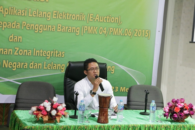 Adapun pada sesi terakhir, Erwin Cahyono, Kepala Seksi Lelang membawakan materi sosialisasi tentang Aplikasi Lelang Elektronik (e-Auction).Pemutaran video mengenai sekilas tentang Lelang e –Autction menandai pembukaan sosialisasi aplikasi lelang e-Auction tersebut selanjutnya Erwin menjelaskan tentang dasar hukum yang melandasi lahirnya aplikasi lelang e-Auction. Erwin memaparkan pula mengenai overview dan alamat domain dari e – Auction, yang dilanjutkan dengan penjelasan bahwa dalam aplikasi lelang e-Auction terdiri dari dua sisi, sisi pertama disebut Front-End yang diakses oleh Peminat lelang sedangkan sisi Back-End dapat diakses oleh Kepala Kantor, Pejabat Lelang, Bendahara Penerima, Kepala Seksi Lelang dan Kepala Seksi Hukum dan Informasi, sebagai penutup, Erwin memaparkan penjelasan mengenai Alur lelang e-Auction.(Penulis/Photografer :Muh.Syuaib/Maruli Tua Sialahi)