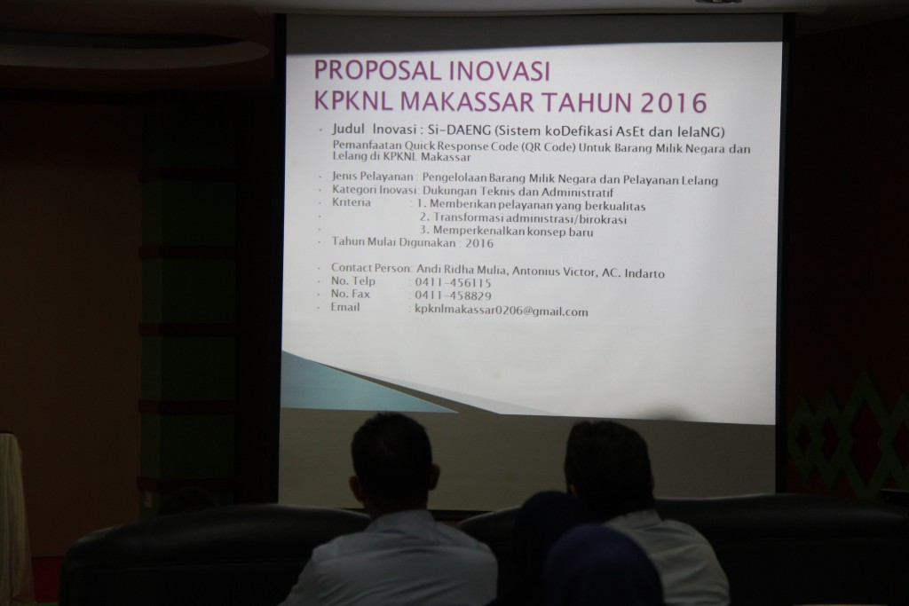 Aplikasi yang memanfaatkan program Microsoft Excell dan teknologi Quick Response Code (QR Code) dengan teknologi Smartphone Android tersebut merupakan inovasi Kantor Pelayanan Kekayaan Negara dan Lelang (KPKNL) Makassar dalam rangka mendukung tugas dan fungsi pengelolaan barang milik negara (mobil dinas) dan pelayanan lelang (kuitansi pembelian lelang) yang mempunyai manfaat sebagai alat identifikasi, informasi dan pengamanan barang/dokumen.