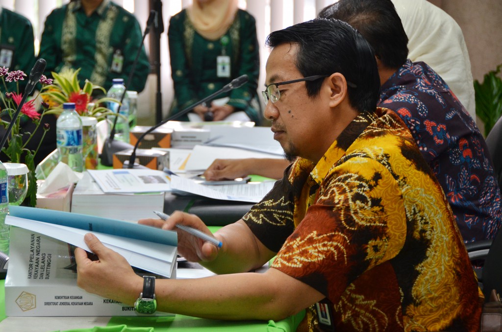 Bukittinggi- Kamis (11/8) Kepala Kantor Pelayanan Kekayaan Negara dan Lelang (KPKNL) Bukittinggi Syukriah memperkenalkan Aplikasi Administrasi Barang Milik Negara (APMIN BMN) di depan Juri Penilaian Kantor Pelayanan Percontohan (KPPc). Presentasi tersebut juga dihadiri Kepala Kanwil Direktorat Jenderal Kekayaan Negara (DJKN) Riau, Sumatera Barat dan Kepulauan Riau (RSK), Walikota Bukittinggi (diwakili oleh Asisten III), para Kepala Kantor unit vertikal Kementerian Keuangan di wilayah Riau, Sumatera Barat dan Kepulauan Riau serta perwakilan stakeholder. Syukriah meyakini inovasi ini bisa membantu mengoptimalkan pengelolaan kekayaan negara.