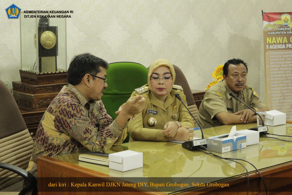 Bupati Grobogan Sri Sumarni menyampaikan ucapan terima kasih dan penghargaan setinggi-tingginya kepada Kanwil DJKN Jateng dan DIY dan semua pihak dalam penyerahan ABMA/T ini kepada Pemerintah Kabupaten Grobogan.