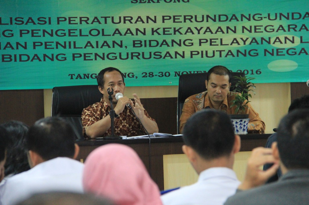 Serpong - Kantor Pelayanan Kekayaan Negara dan Lelang (KPKNL) Serpong mengadakan sosialisasi peraturan perundang-undangan di Bidang Pengelolaan Kekayaan Negara, Bidang Pelayanan Penilaian, Bidang Pelayanan Lelang dan Bidang Pengurusan Piutang Negara. Sosialisasi dilaksanakan pada tanggal 28 s.d. 30 November 2016 bertempat di Ruang Serbaguna KPKNL Serpong.