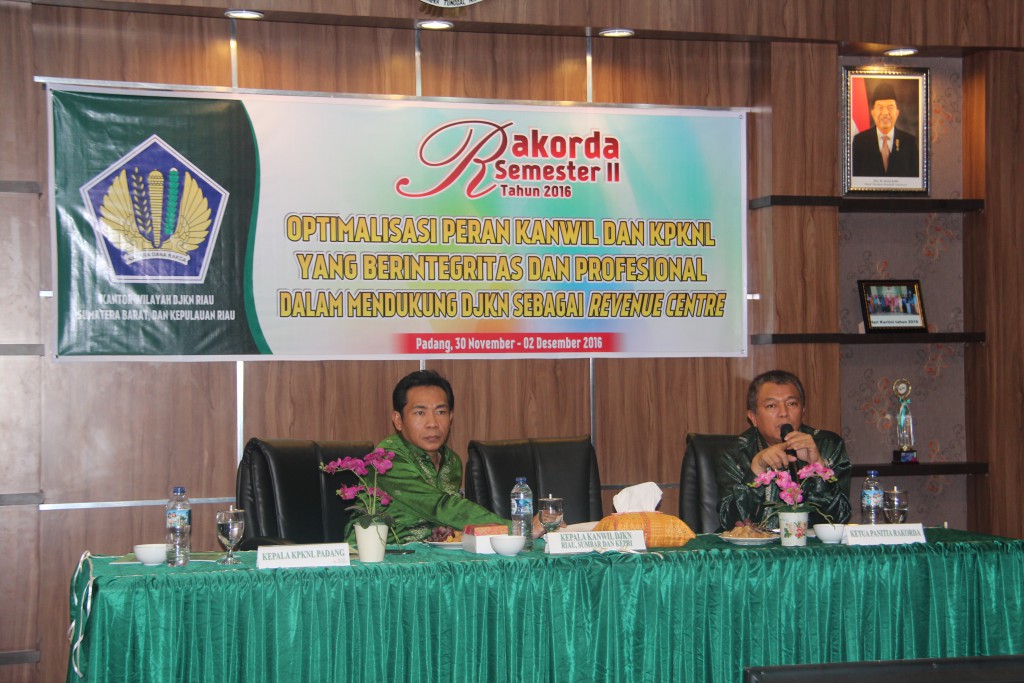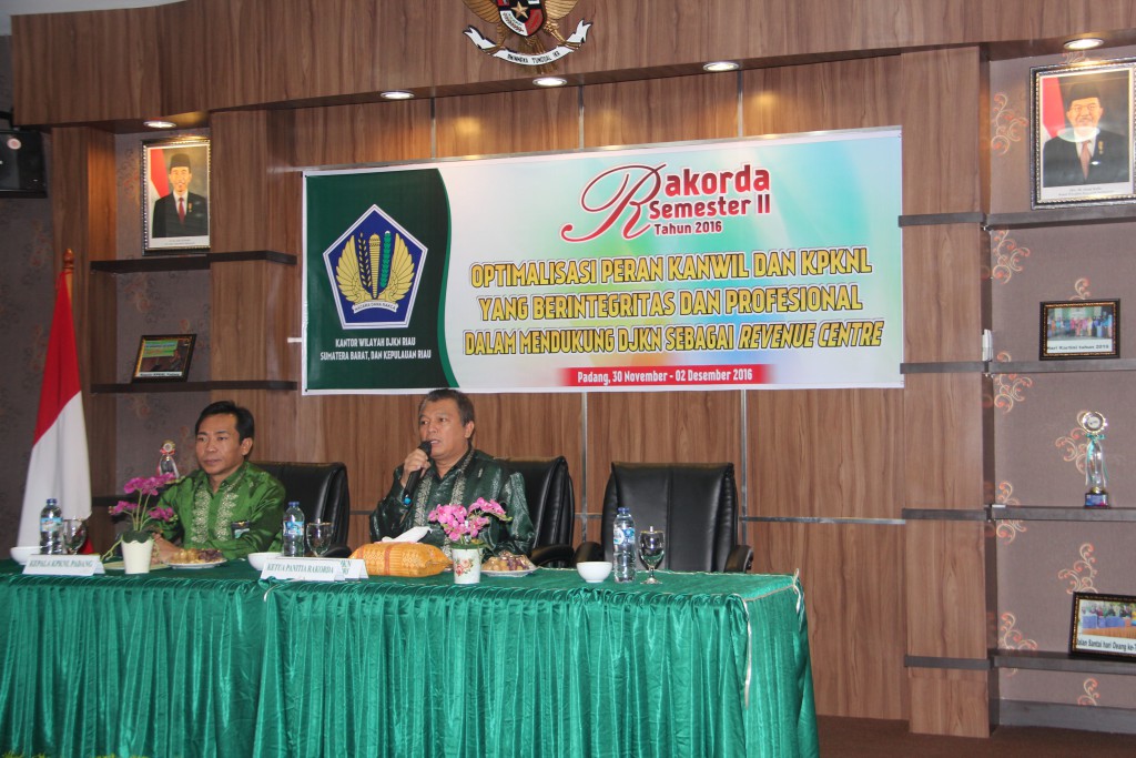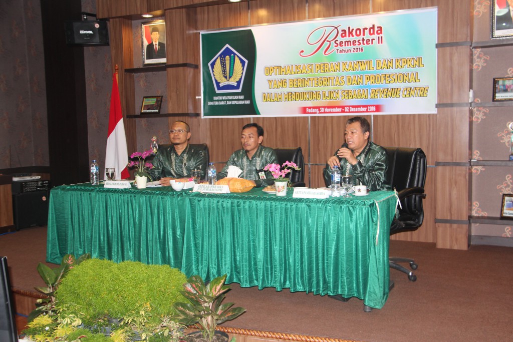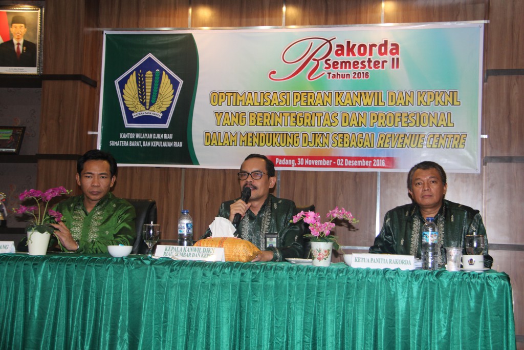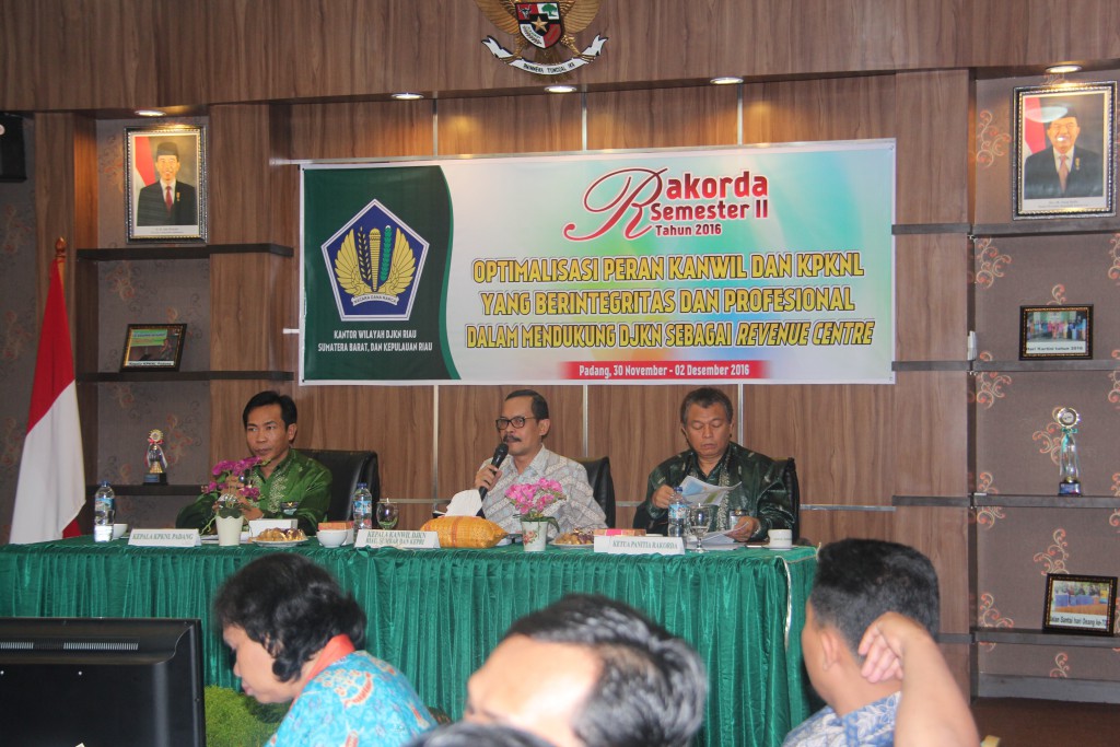 Padang – Kantor Wilayah Direktorat Jenderal Kekayaan Negara (DJKN) Riau, Sumatera Barat, dan Kepulauan Riau (RSK) menyelenggarakan Rapat Koordinasi Daerah (Rakorda) Semester II Tahun 2016 di Kantor Pelayanan Kekayaan Negara dan Lelang (KPKNL) Padang. Rakorda yang berlangsung selama 30 November hingga 2 Desember 2016 ini dihadiri oleh perwakilan pejabat Kantor Wilayah DJKN RSK serta Kantor Pelayanan Kekayaan Negara dan Lelang (KPKNL) Dumai, KPKNL Batam, KPKNL Pekanbaru, KPKNL Bukittinggi, dan KPKNL Padang.