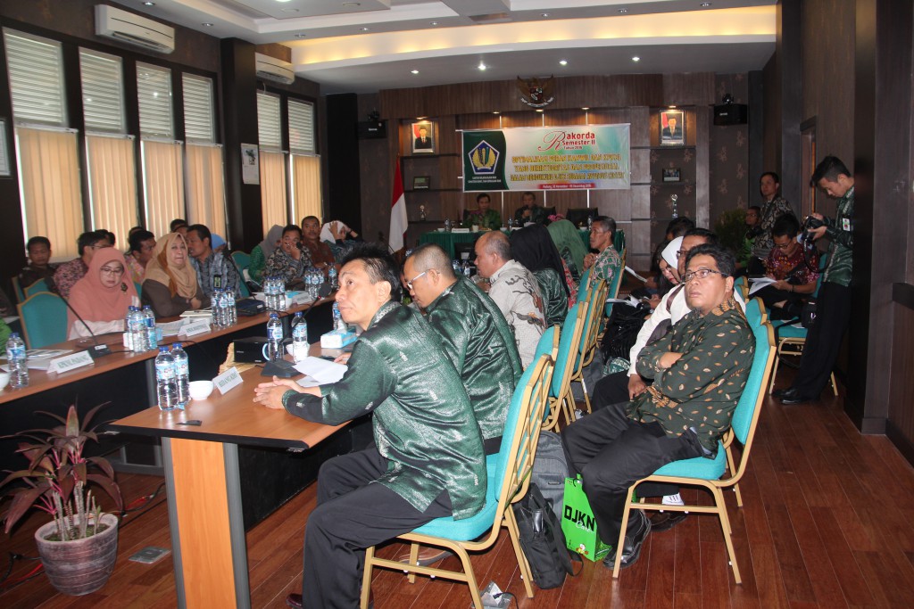 Rakorda Semester II Tahun 2016 Kantor Wilayah DJKN RSK ini mengusung tema Optimalisasi peran Kanwil dan KPKNL yang berintegritas dan profesional dalam mendukung DJKN sebagai Revenue Center. “Menanggapi isu yang berkembang saat ini, saya sengaja menekankan integritas untuk tema Rakorda Semester II ini,” ujar Tugas Priyo Waluyo. Menurutnya, integritas adalah poin terpenting bagi aparat sipil negara (ASN) dalam menjalankan tugasnya. Diiringi dengan profesionalisme, seluruh ASN di lingkungan Kantor Wilayah DJKN RSK dituntut untuk dapat mewujudkan cita-cita DJKN menjadi pusat penerimaan baru bagi Kementerian Keuangan.