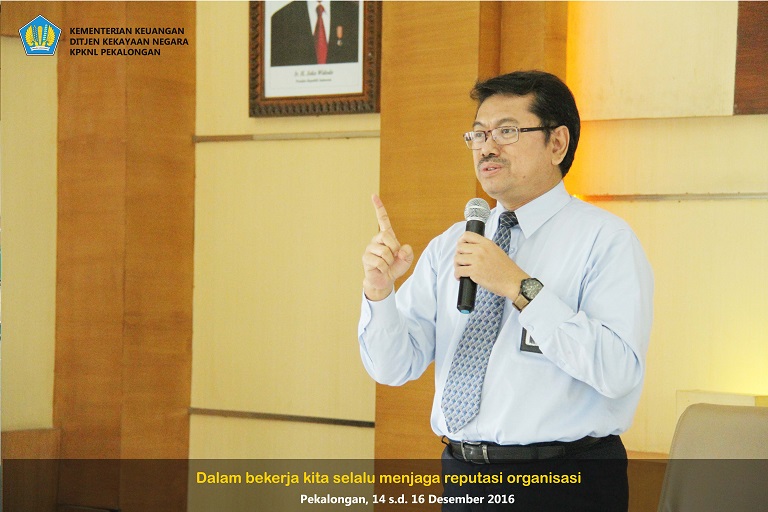 Lebih lanjut pria yang gemar berolah raga ini menghimbau agar dalam bekerja kita selalu menjaga reputasi organisasi, tetap semangat dan saling mengingatkan agar tidak ada opini yang negatif. Antar Bagian/Bidang/Subbag/Seksi di jajaran Kanwil DJKN Jawa Tengah dan D.I. Yogyakarta agar senantiasa bersinergi dan membangun komunikasi baik dalam pelaksanaan tugas dan fungsi serta memahami pentingnya dokumentasi dalam setiap kegiatan. Selain itu dalam mengidentifikasi permasalahan selalu didasarkan atas fakta-fakta yang ada bukan hipotesa, mengembangkan kreativitas untuk menciptakan inovasi-inovasi baru terkait peningkatan kualitas pelayanan.