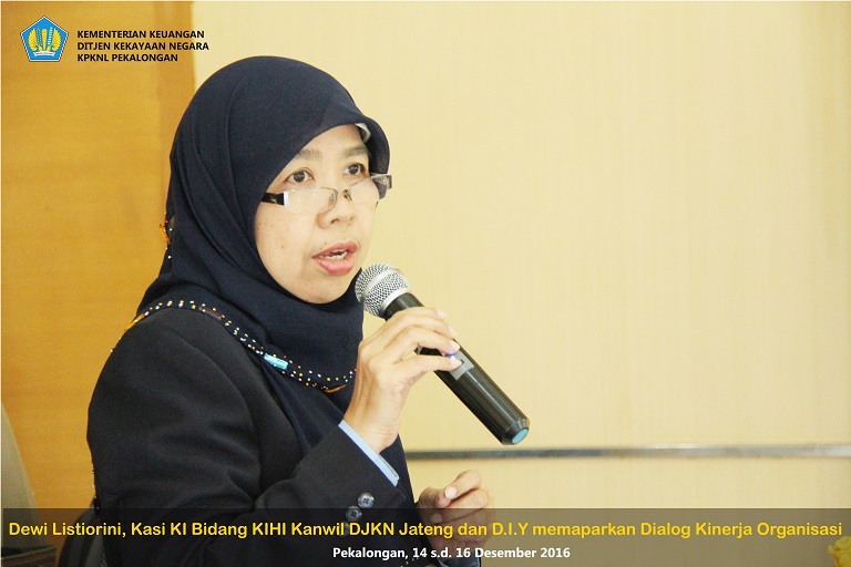 Pada Pembahasan DKO, Kepala Bidang Kepatuhan Internal, Hukum dan Informasi (Kabid KIHI) Kanwil DJKN Jawa Tengah dan D.I.Yogyakarta Iwan Nugroho menyampaikan bahwa Nilai Kinerja Organisasi Kanwil DJKN Jawa Tengah dan D.I.Yogyakarta sampai dengan 30 November 2016 sebesar 112,55% dengan IKU yang belum tercapai (kuning) yaitu persentase hasil pengurusan piutang negara dan persentase pemenuhan standar hard competency. Dengan capaian ini Kanwil DJKN Jawa Tengah dan D.I.Yogyakarta tetap optimis dan antusias untuk mencapai target IKU tahun 2016 yang telah ditetapkan.