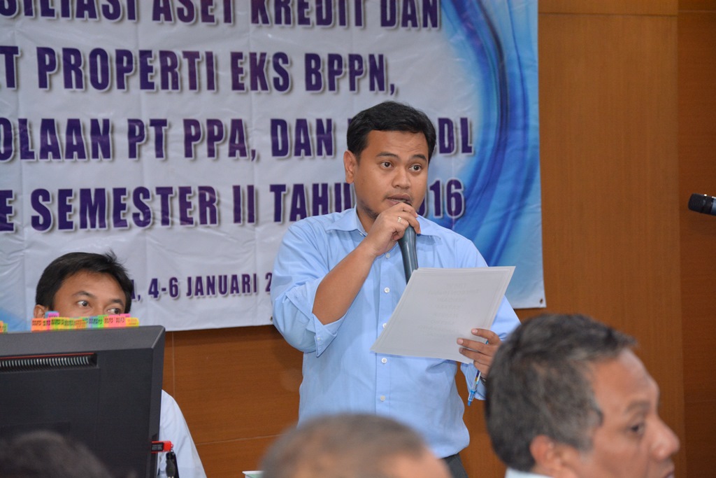 Acara dilanjutkan dengan sesi tanya jawab. Dalam sesi ini, peserta mengungkapkan berbagai permasalahan yang terjadi pada tempat kerja masing-masing. Mulai dari dasar hukum dan mekanisme pemanfaatan aset properti, masalah peralihan hak atas tanah dan bangunan serta aset kredit lain, kasus akta turunan, hingga pemanfaatan aset intended.