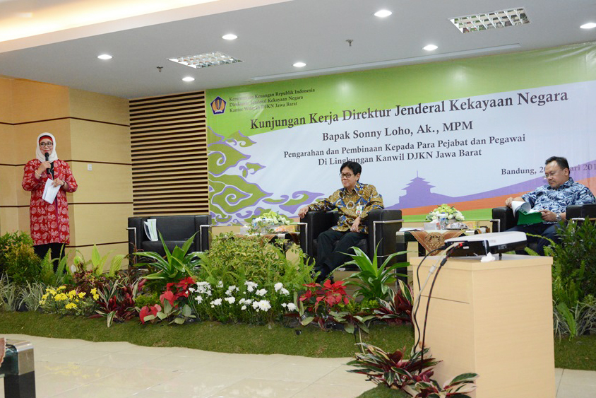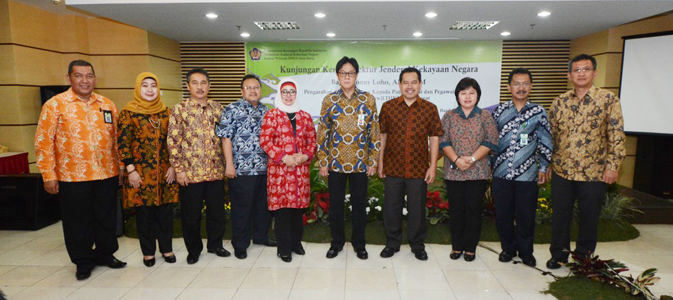 Bandung - Jumat (20/1/2017) Kantor Wilayah Direktorat Jenderal Kekayaan Negara Jawa Barat ( Kanwil DJKN Jabar) mendapat kunjungan Direktur Jenderal Kekayaan Negara Sonny Loho. Dalam kunjungan kerjanya Dirjen KN didampingi Sekretaris DJKN Dody Iskandar, Direktur Kekayaan Negara Dipisahkan Dedi Syarif dan beberapa Pejabat Eselon III dan IV Kantor Pusat DJKN.