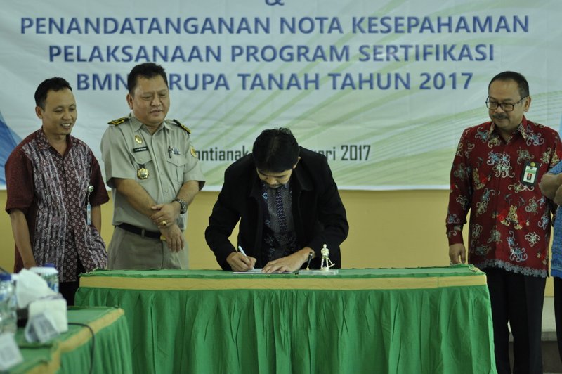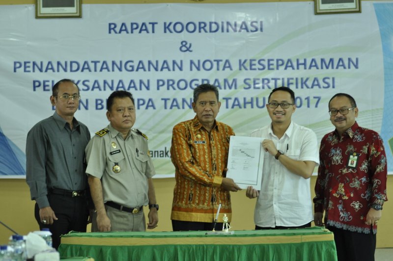 “Saya sependapat dengan pak Tedy bahwa kita harus satu bahasa dalam teknis pelaksanaan kegiatan ini, “ pernyataan ini meluncur dengan tegas dari Siswidodo selaku Kepala Bidang Hak Tanah dan Pendaftaran Tanah (HTPT) mewakili kepala Kanwil Badan Pertanahan Nasional (BPN) Provinsi Kalimantan Barat pada acara Rapat Koordinasi dan penandatanganan nota kesepahaman pelaksanaan program sertifikasi BMN berupa tanah tahun 2017 untuk wilayah Kalimantan Barat