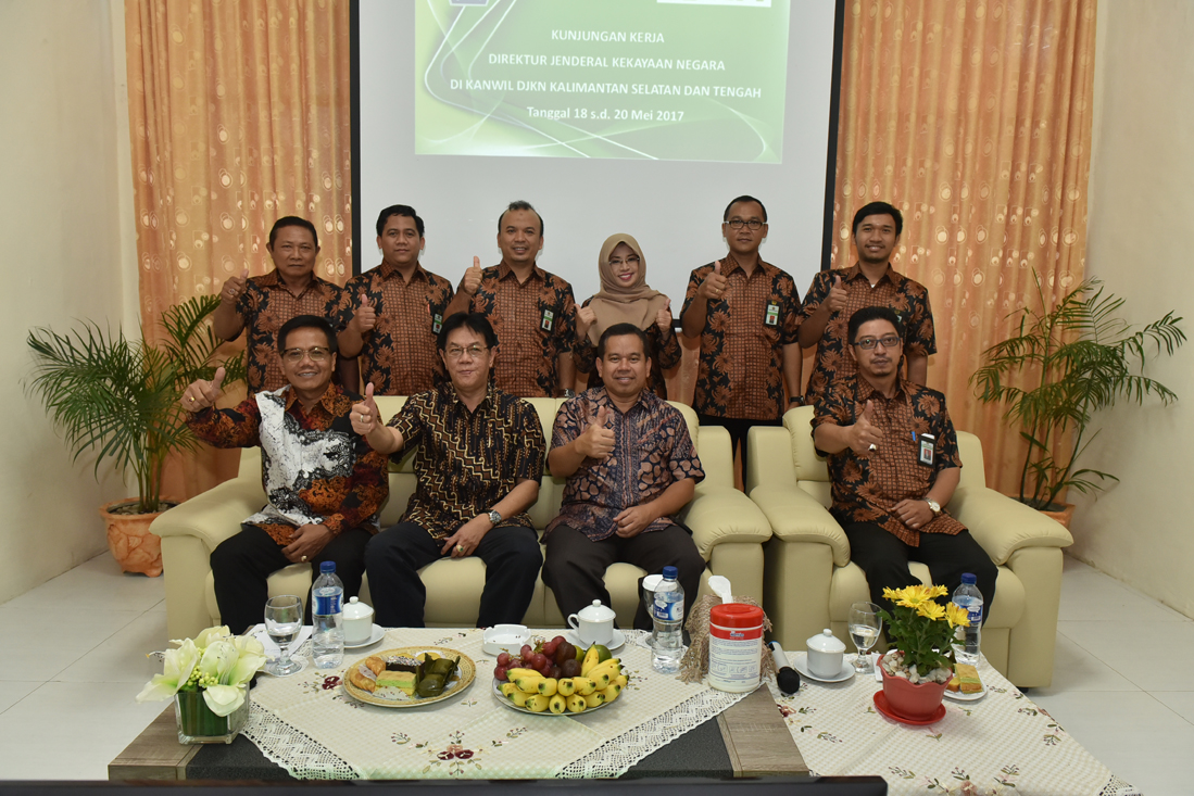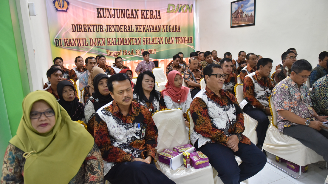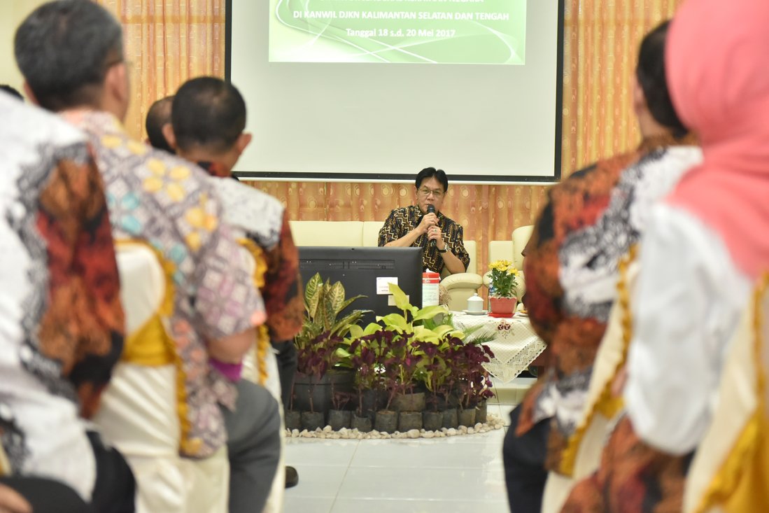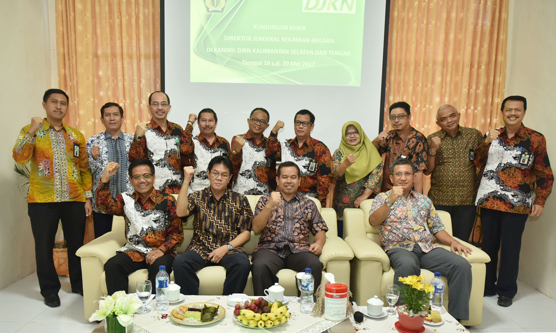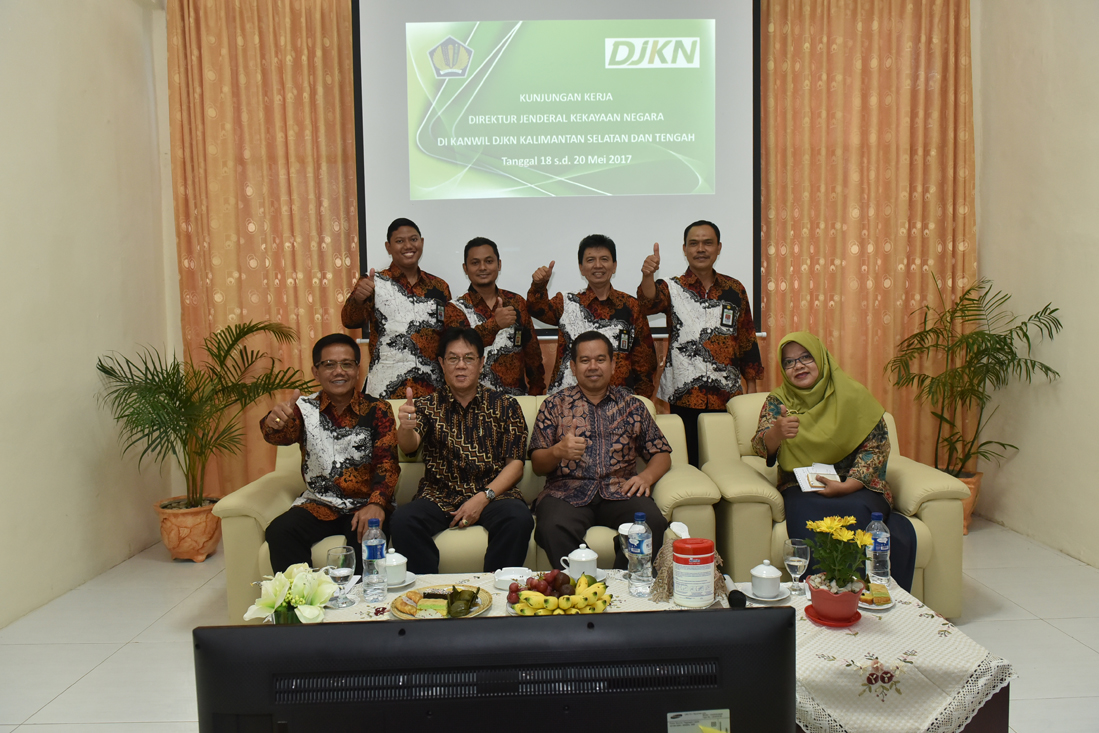 Banjarbaru - Jajaran Kanwil DJKN Kalimantan Selatan dan Tengah (Kalselteng) berkesempatan memperoleh informasi terhangat dan terkini hasil Rakernas DJKN 2017 langsung dari Direktur Jenderal (Dirjen) Kekayaan Negara Sonny Loho dan Sekretaris DJKN Dodi Iskandar, pada Jumat (19/05) di Banjarbaru, Kalimantan Selatan.