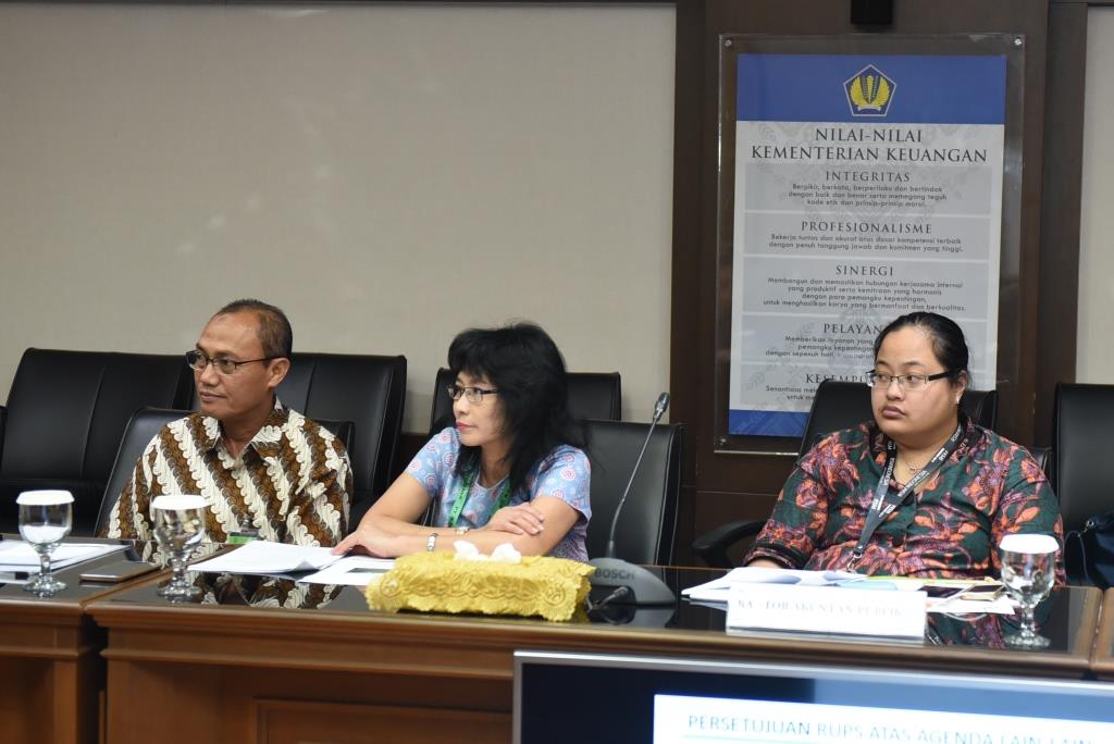 RUPST akhirnya bermufakat: (1) menyetujui Laporan Tahunan 2016 dan mengesahkan Laporan Keuangan Tahun Buku 2016, (2) menunjuk Kantor Akuntan Publik Amir, Mawar, Ariyanto dan rekan untuk mengaudit Laporan Keuangan Tahun Buku 2017 dan (3) melakukan perubahan Anggaran Dasar Perseroan dalam rangka mendukung pengembangan bisnis perusahaan. (Humas DJKN)