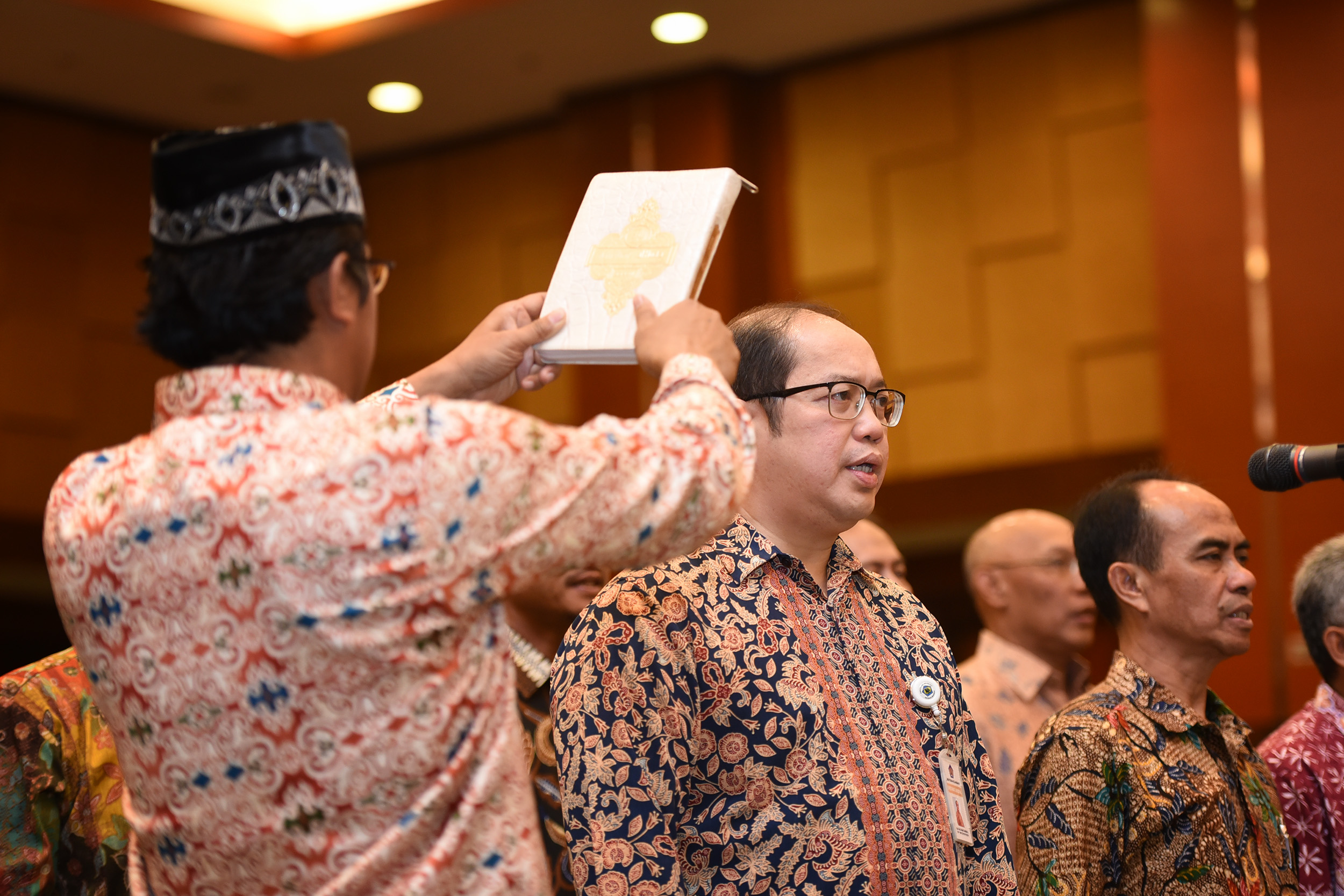 melantik dan mengambil sumpah Staf Ahli Menteri Keuangan bidang Kebijakan dan
