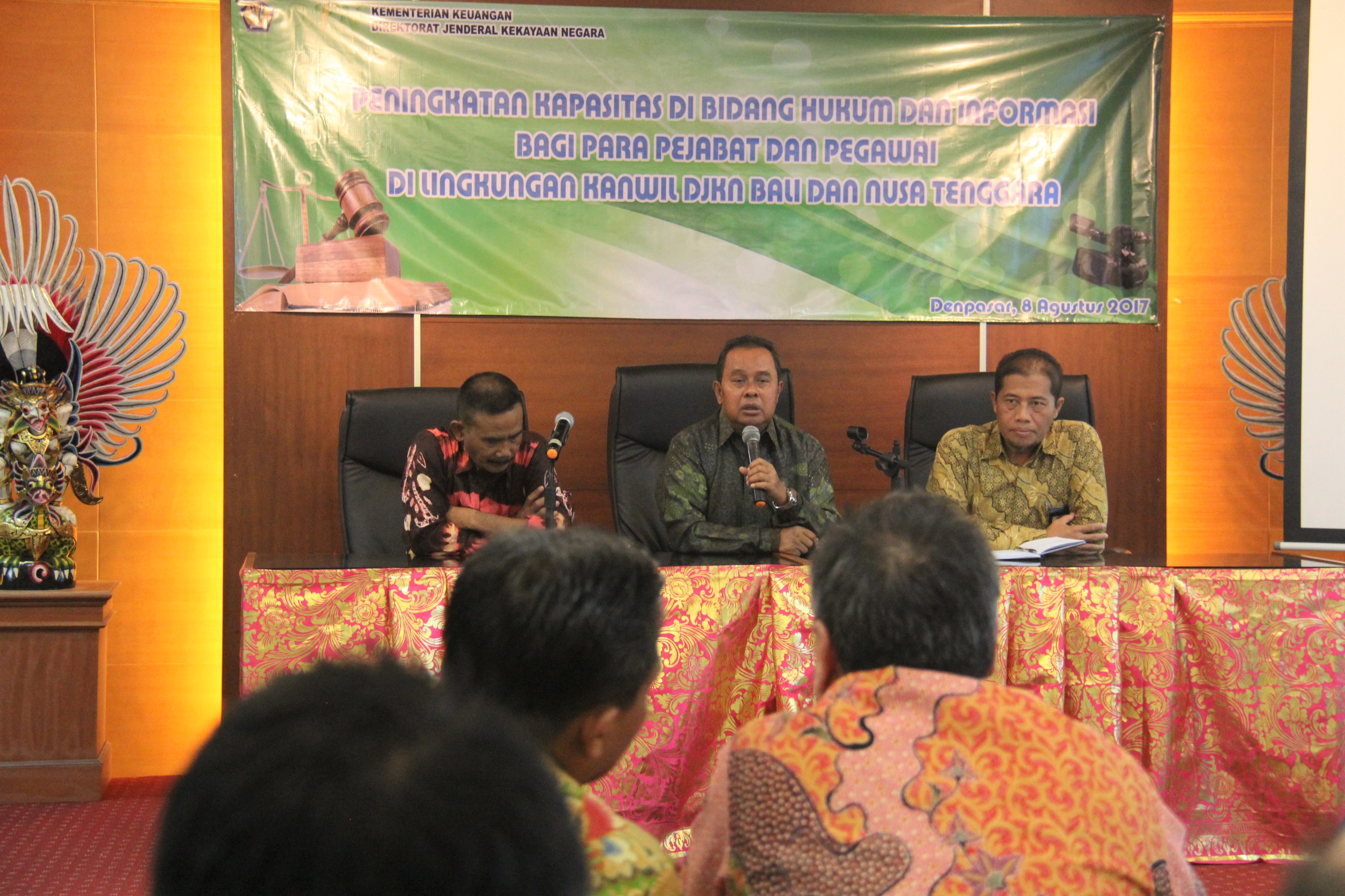 Para Kepala Kantor Pelayanan Kekayaan Negara dan Lelang (KPKNL) beserta Kepala Seksi Hukum dan Informasi di wilayah Bali dan Nusa Tenggara turut hadir pada acara yang dilangsungkan di Aula Lantai 3 Gedung Keuangan Negara (GKN) 1 Denpasar, Jalan Dr. Kusuma Atmaja Renon, Denpasar, Bali.