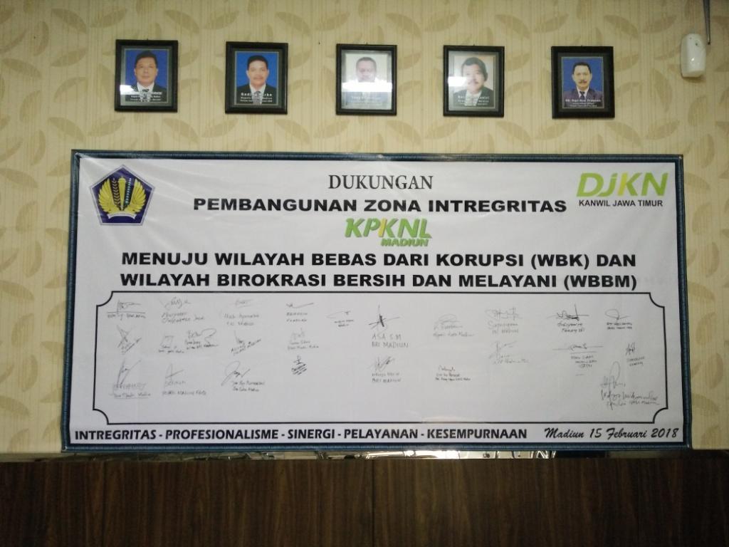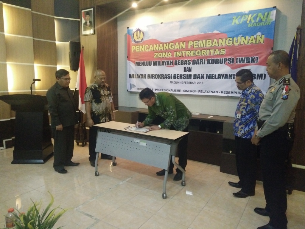 adalah penandatanganan piagam pencanangan zona integritas di KPKNL Madiun oleh