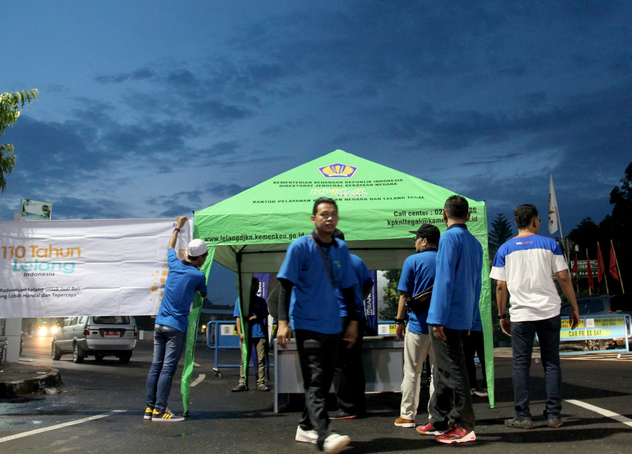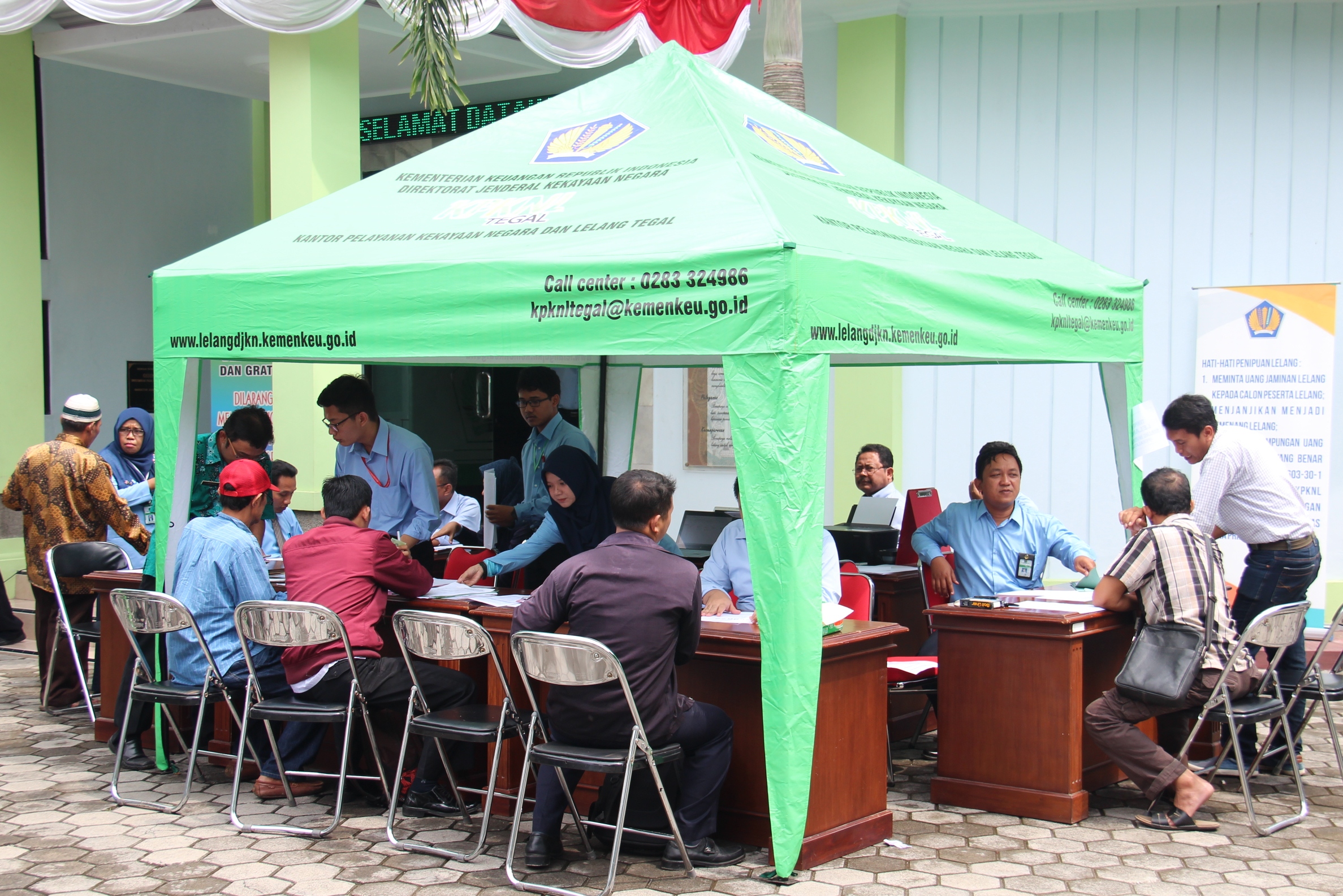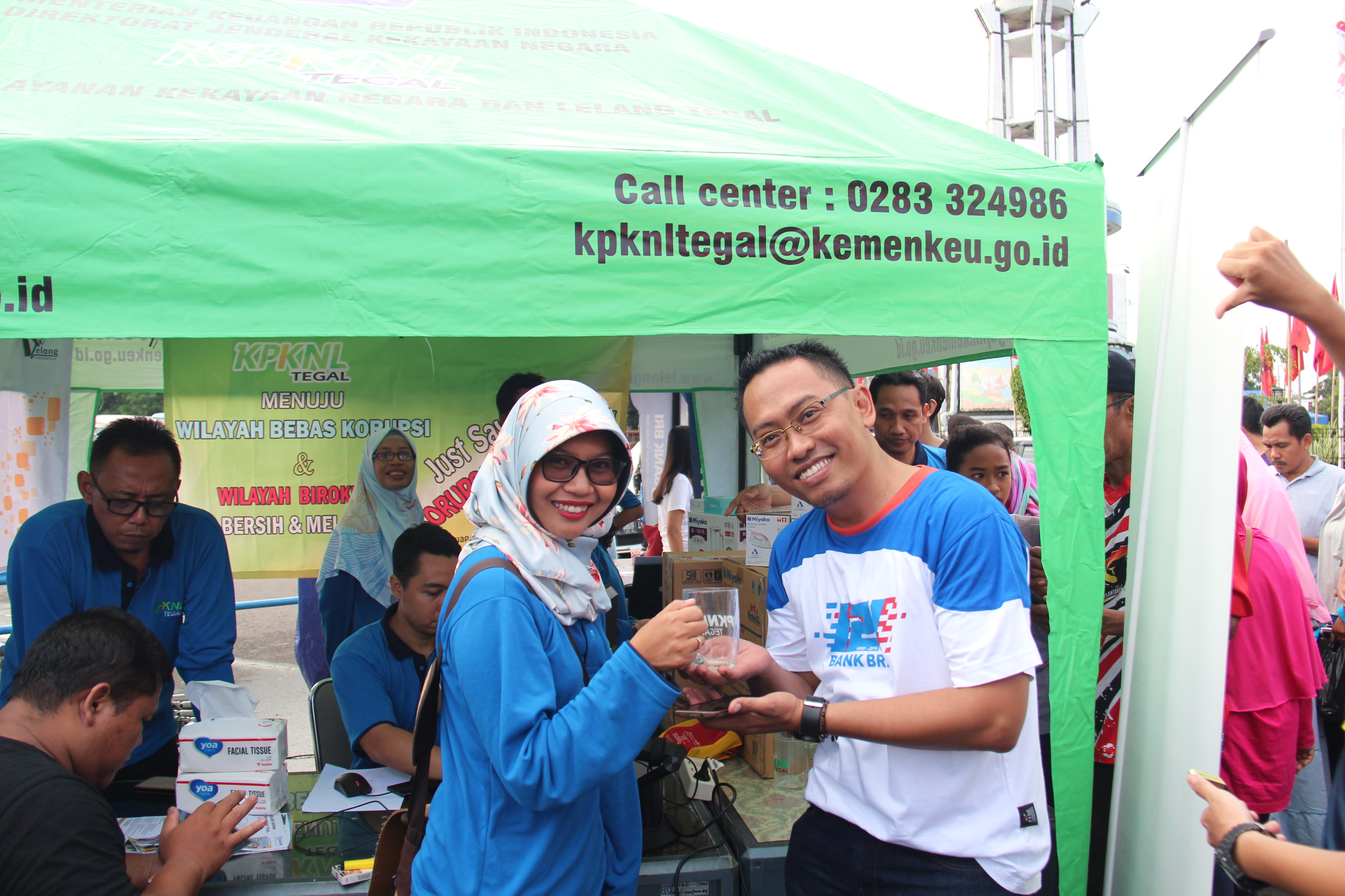 Dipimpin langsung oleh Kepala KPKNL Tegal Dwi Haryanto, pagi itu punggawa KPKNL Tegal membagikan brosur dan memberikan edukasi langsung kepada masyarakat mengenai lelang dan tata caranya. KPKNL Tegal yang membuka stand di Depan Kantor Cabang BRI Tegal juga mengajak masyarakat membuat akun lelang melalui internet.