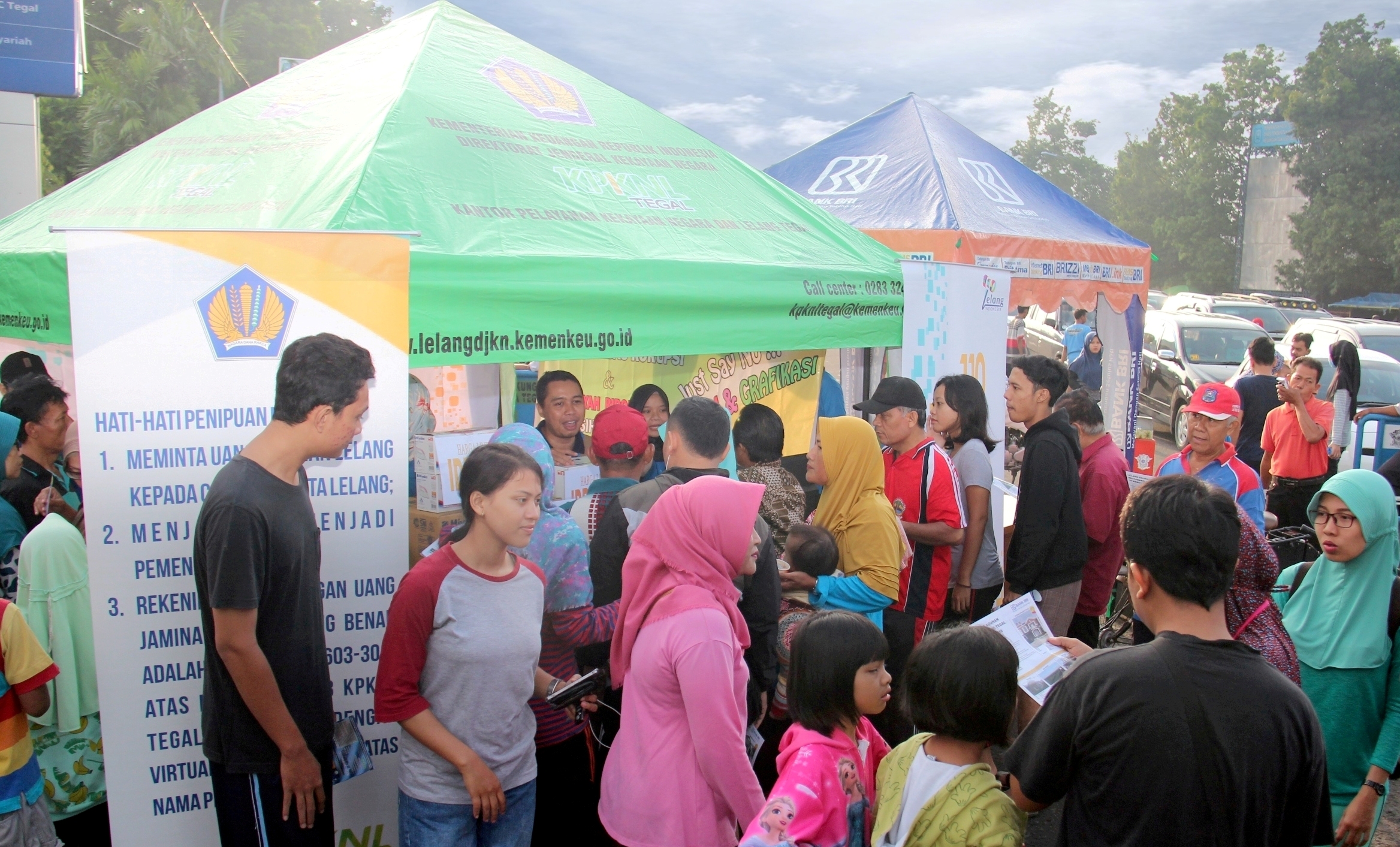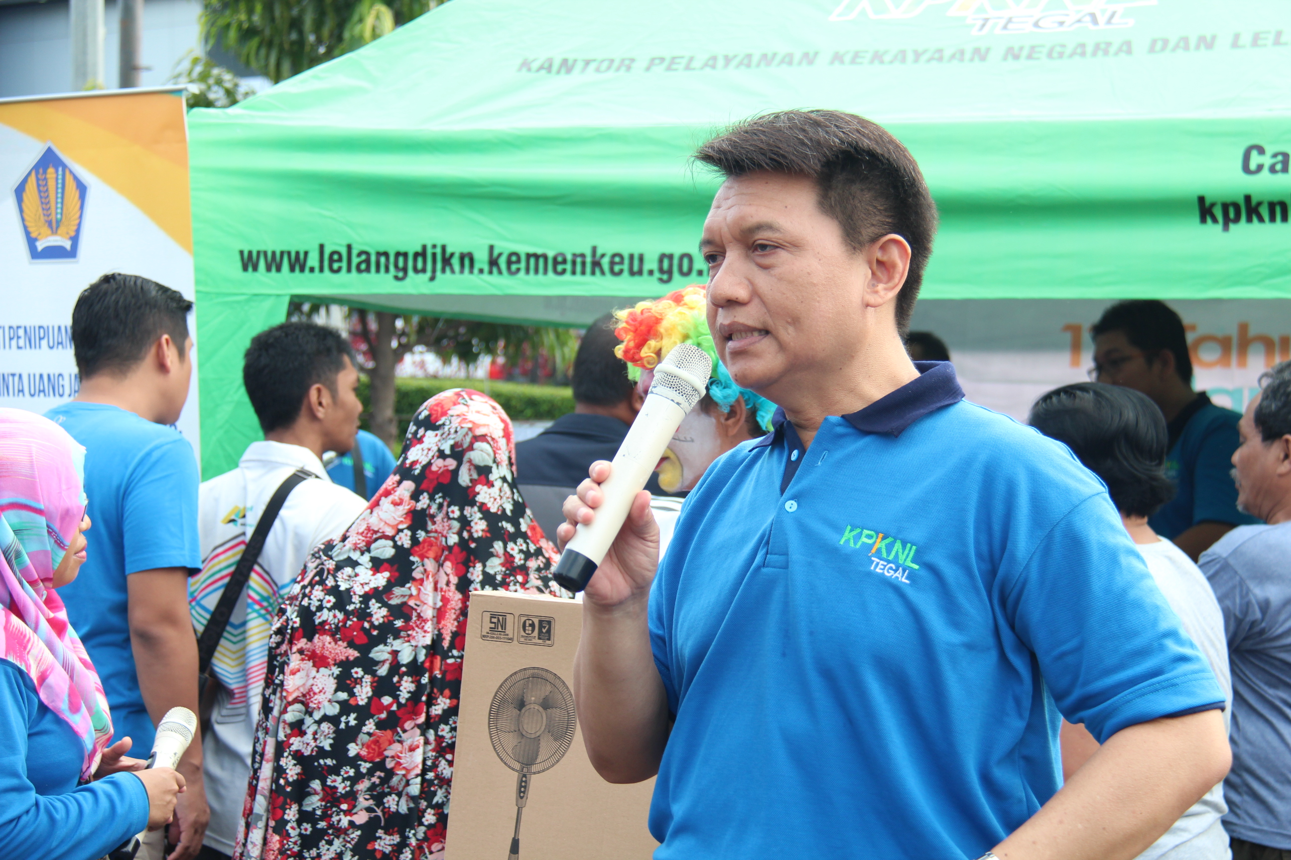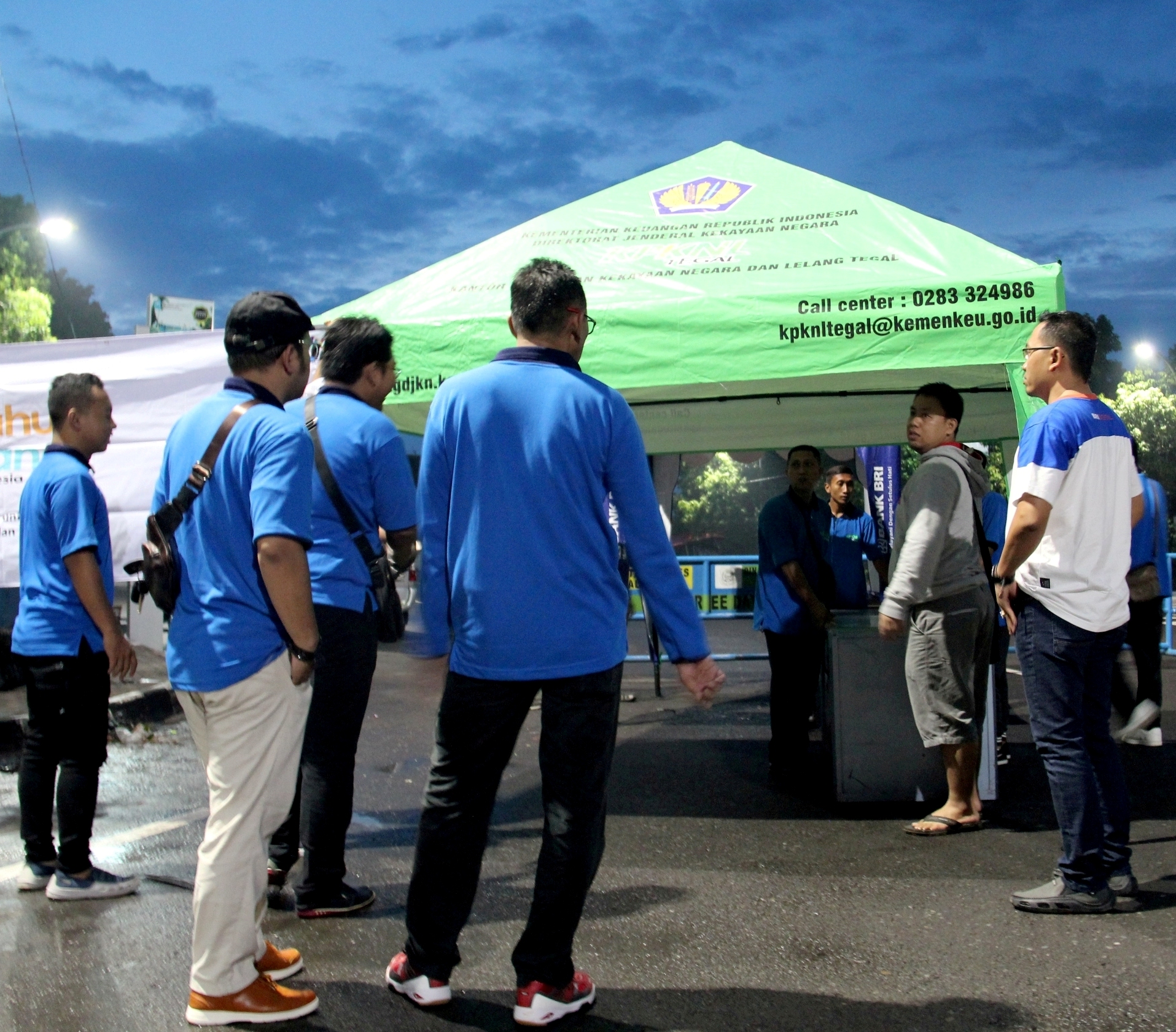 Dipimpin langsung oleh Kepala KPKNL Tegal Dwi Haryanto, pagi itu punggawa KPKNL Tegal membagikan brosur dan memberikan edukasi langsung kepada masyarakat mengenai lelang dan tata caranya. KPKNL Tegal yang membuka stand di Depan Kantor Cabang BRI Tegal juga mengajak masyarakat membuat akun lelang melalui internet.