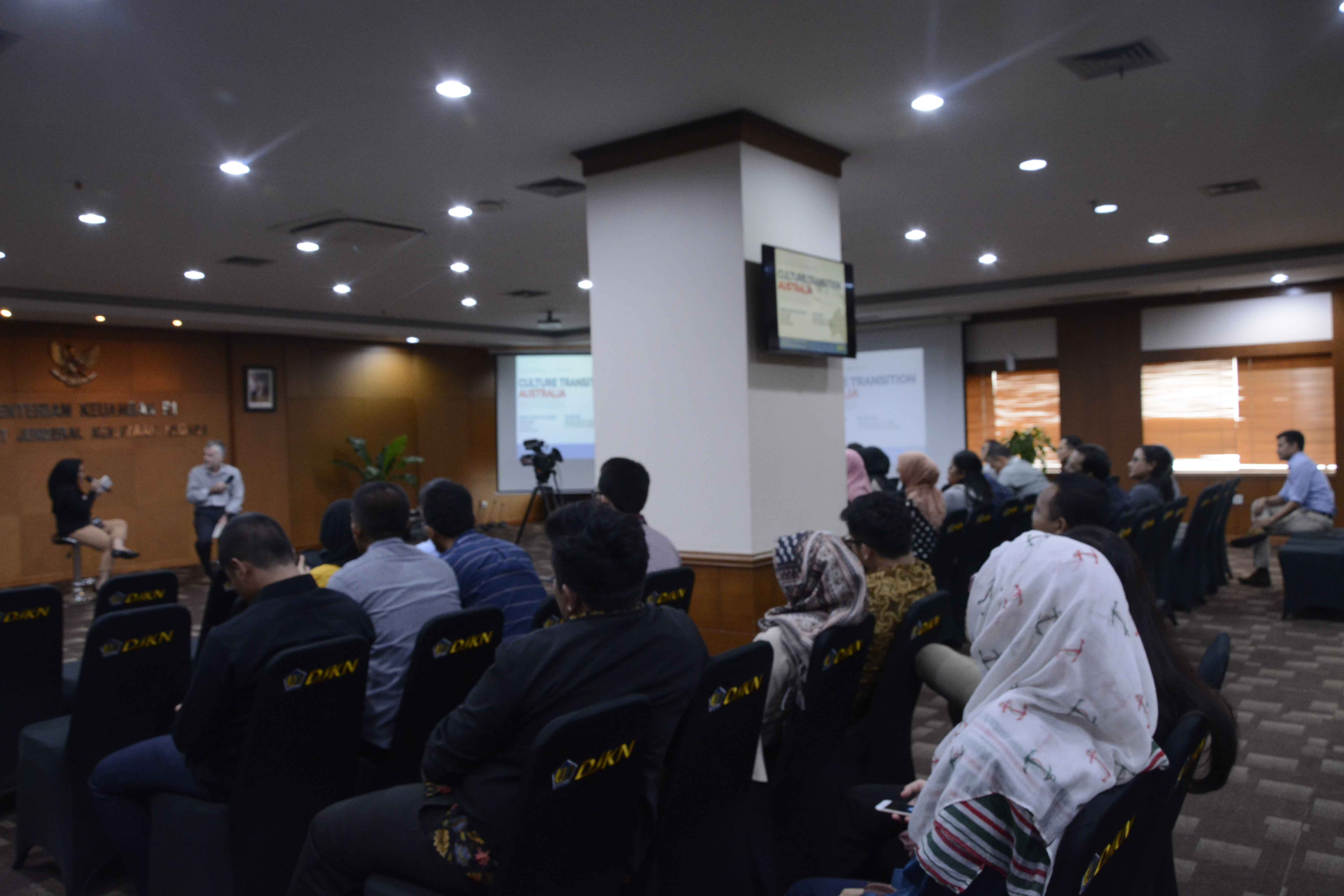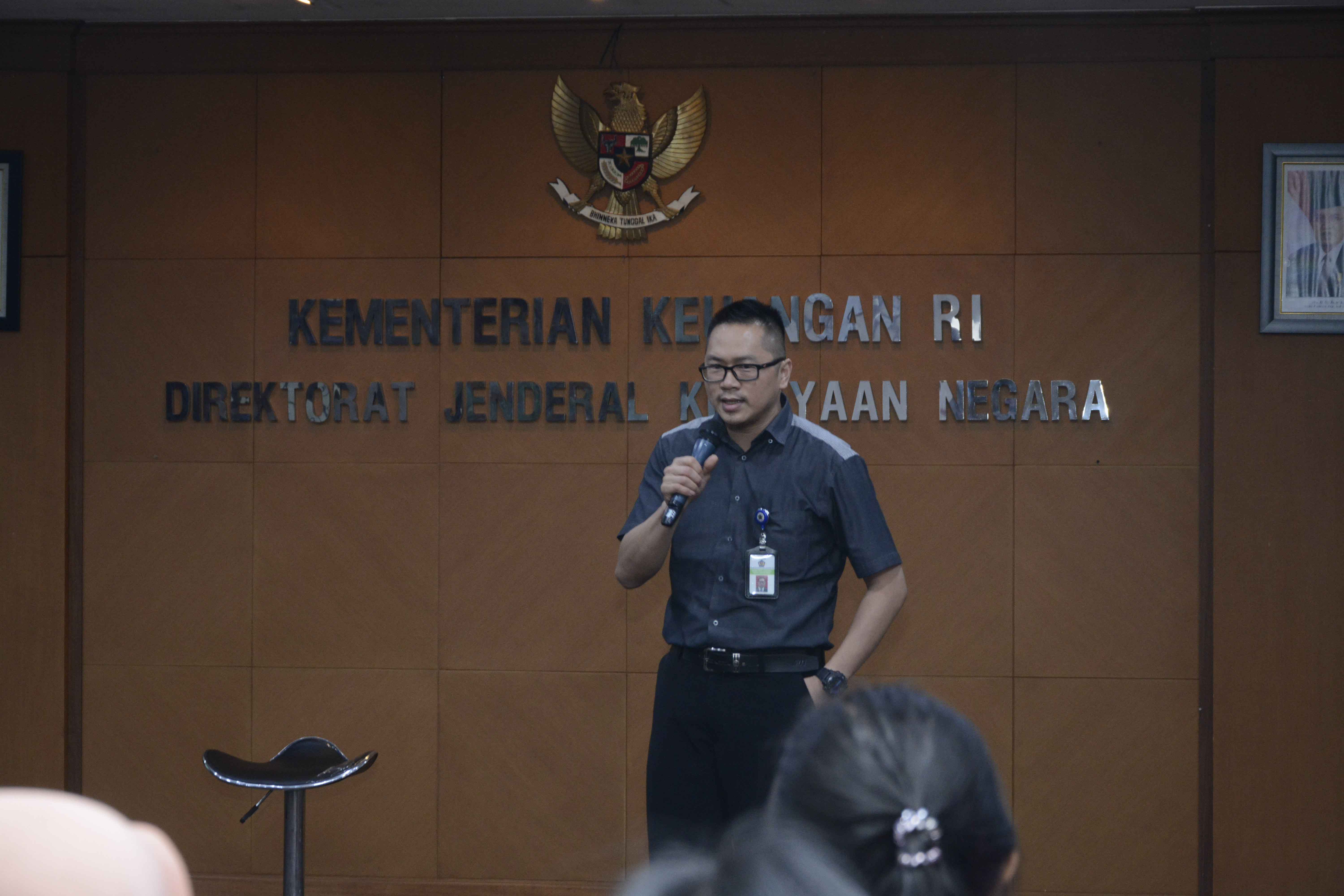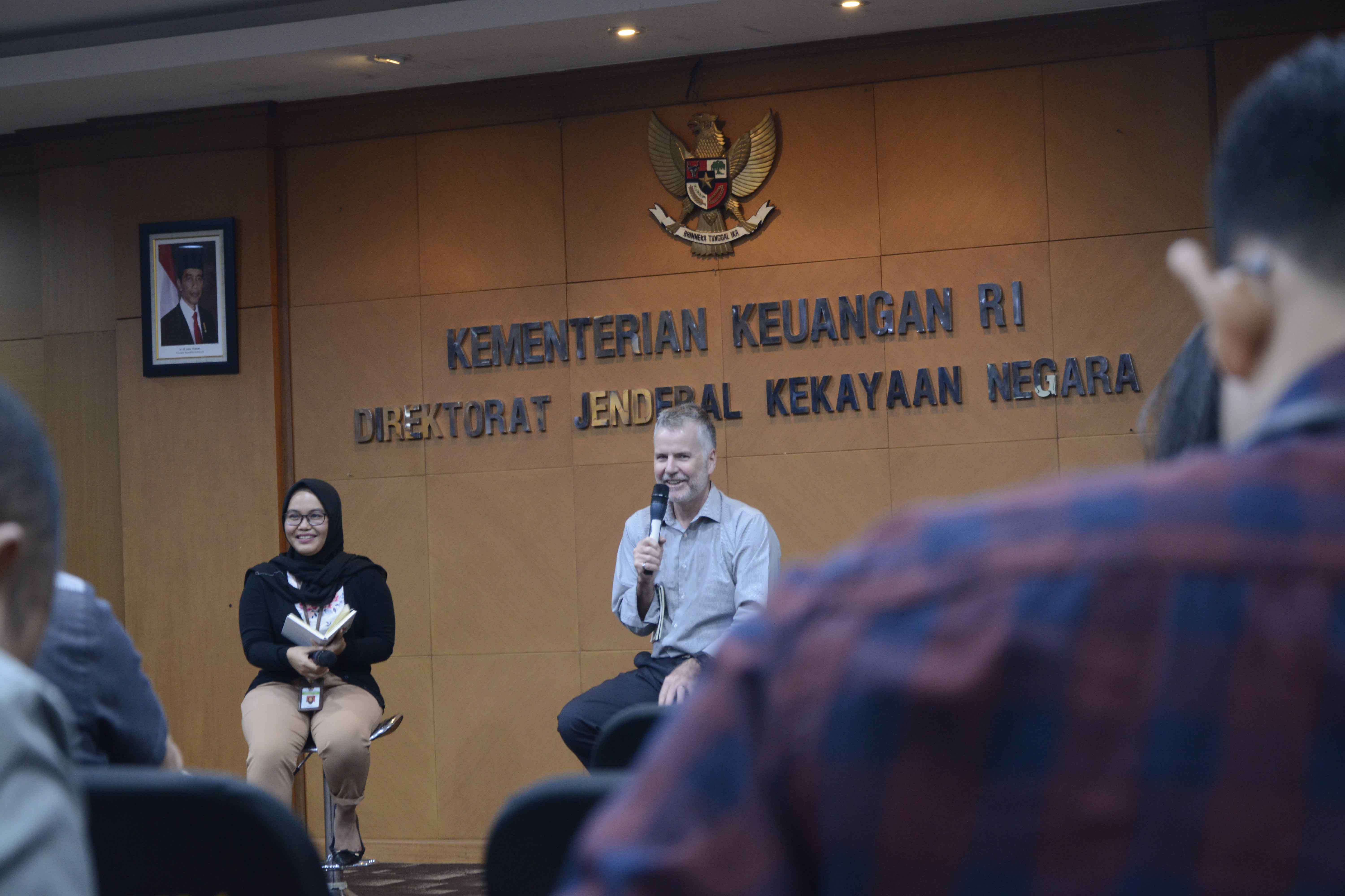 Australia-Indonesia pada Kamis (30/8) di Aula DJKN. Brian Thomas, pegawai Autralian Treasury