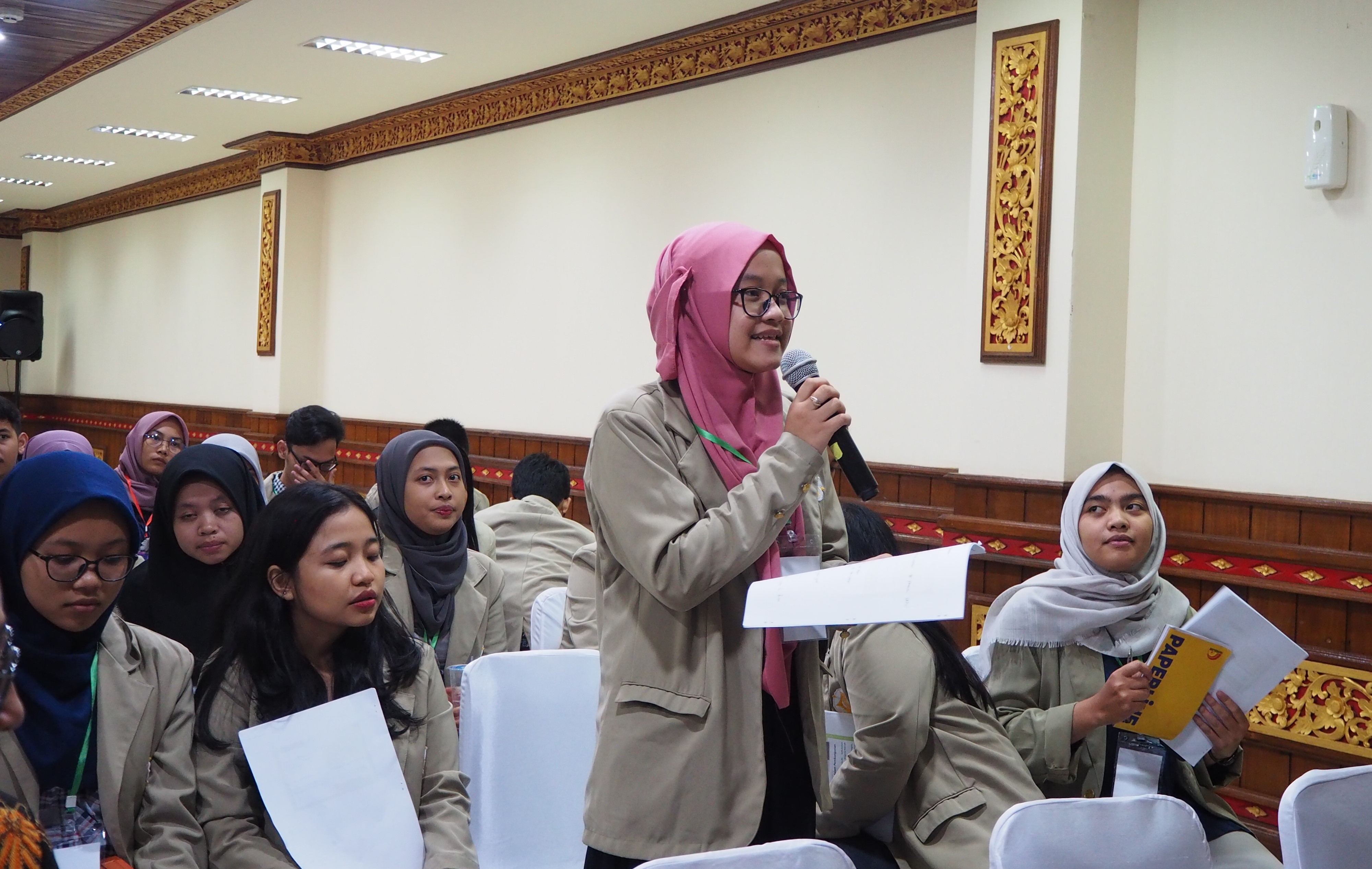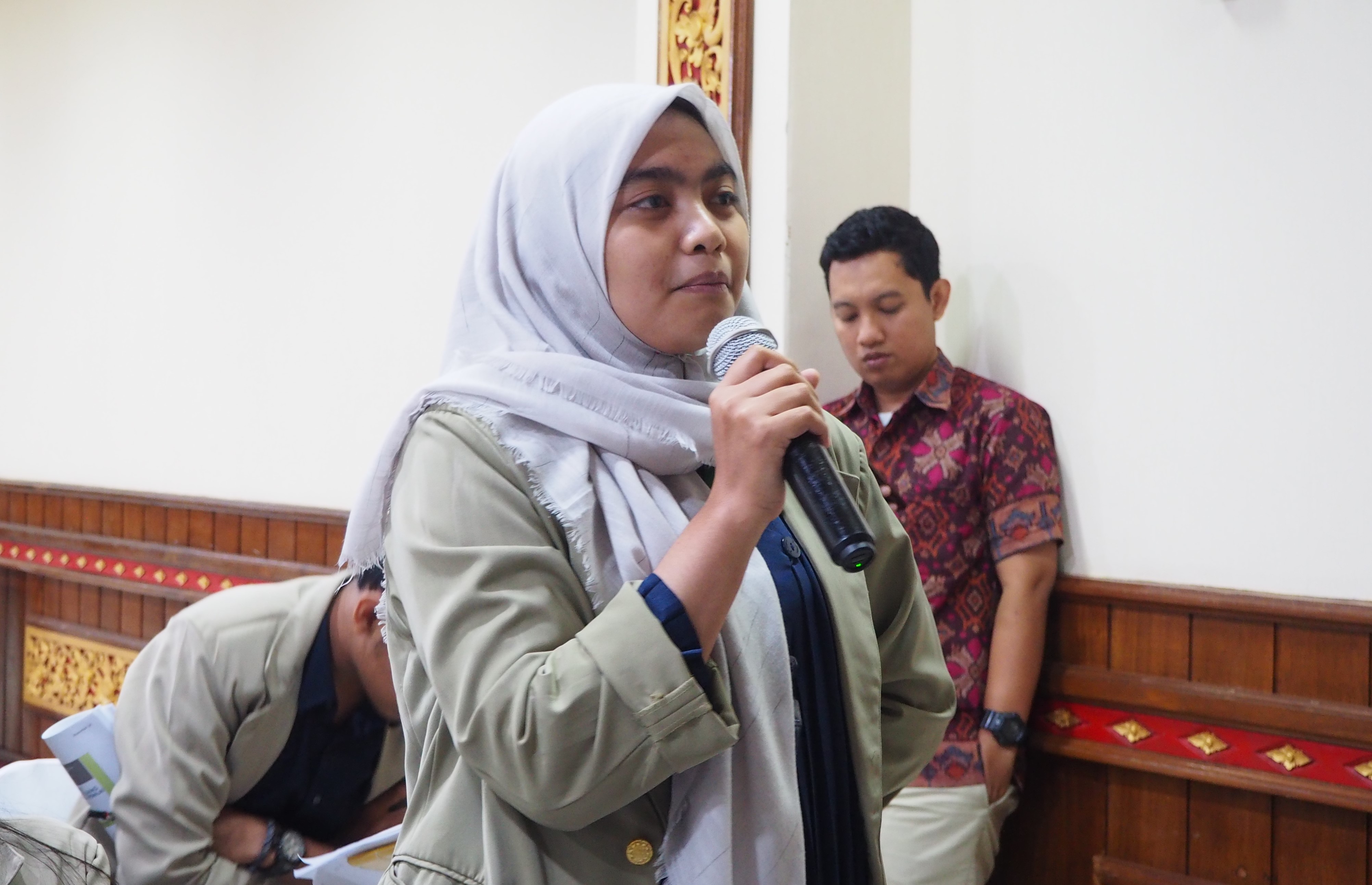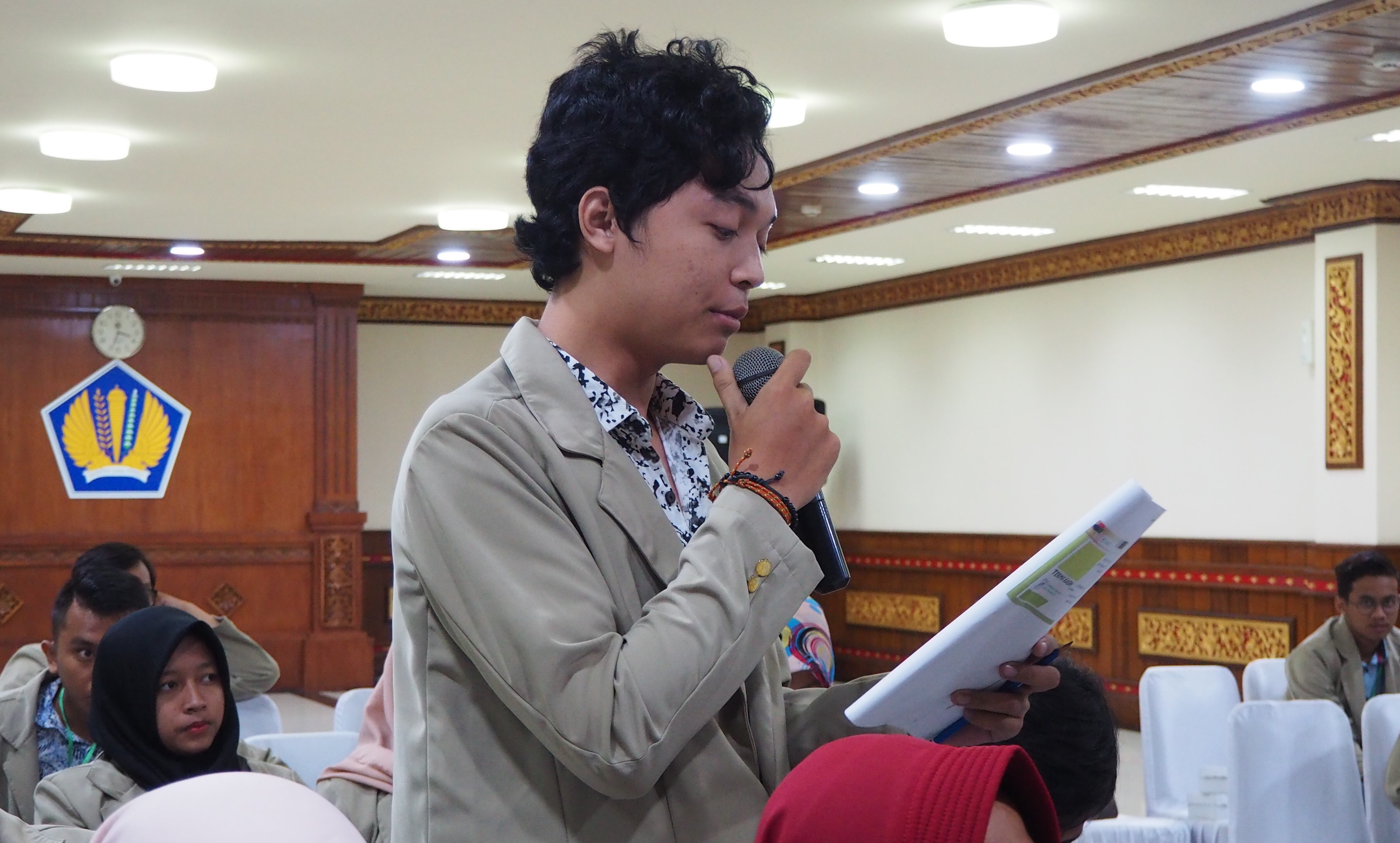 seorang mahasiswa UGM Semester V menjelaskan kegiatan Visiting Company kali ini memilih Bali sebagai destinasi akhir