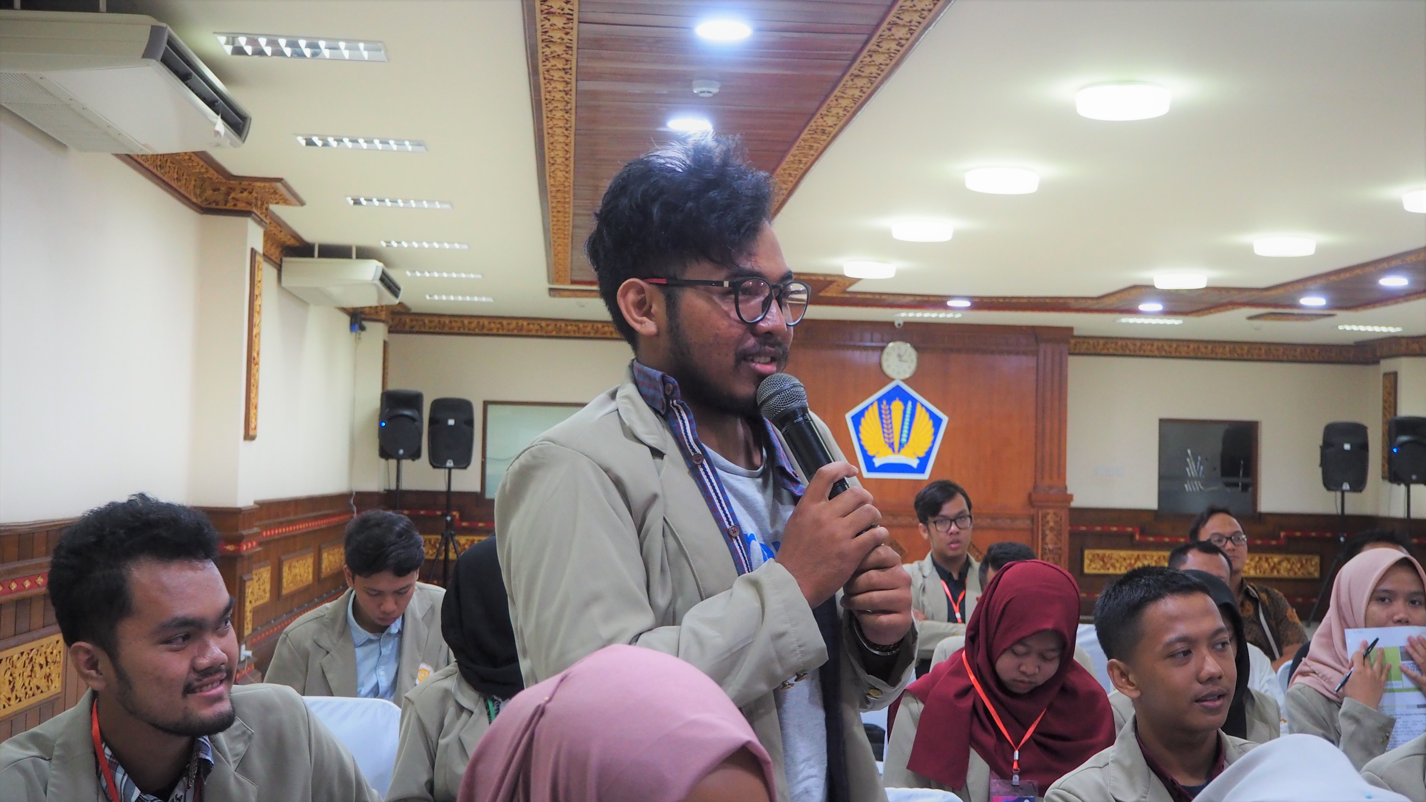 Salah seorang dari mahasiswa UGM bertanya mengenai penilaian aset luar angkasa. Pertanyaan yang diluar perkiraan ini membuat seisi ruangan mulai ikut berpikir. Dengan jelas, Santoso menjawab, sampai sekarang belum ada kepastian mengenai aset luar angkasa yang dimiliki Indonesia karena aset-aset tersebut belum jelas kepemilikannya. Kebanyakan aset luar angkasa bukanlah BMN sehingga dalam hal penilaian masih belum ada keputusan yang mengaturnya.