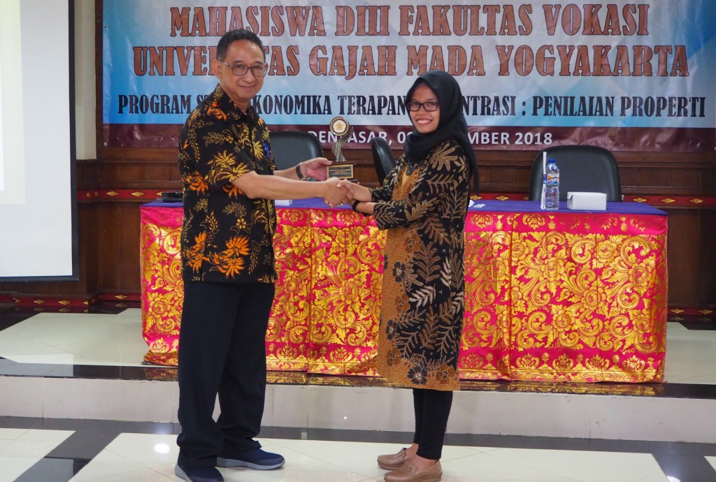 Kepala Kantor yang lahir di Pamulang ini menjelaskan, KPKNL Denpasar telah menyelesaikan Revaluasi BMN dengan kenaikan yang cukup signifikan yakni 365,81% di tahun 2017 dan kenaikan 550,73% di tahun 2018. Satker yang menjadi mitra kerja KPKNL Denpasar sangat mendukung selesainya Revaluasi BMN dengan hasil yang cukup besar, khususnya Kementerian PUPR yang menjadi penyumbang jumlah NUP (Nomor Urut Pendaftaran) Barang terbanyak. Sampai Agustus 2018, KPKNL Denpasar telah menilai total 34.464 barang di tahun 2017 hingga 2018. Dalam hal ini, sangat penting peran seorang penilai sebab tidak mudah untuk mendapatkan nilai aset dengan jumlah besar tersebut. Materi yang disampaikan Wahyu Nendro ditutup dengan pemberian plakat dari pihak KPKNL Denpasar untuk UGM dan sebaliknya.