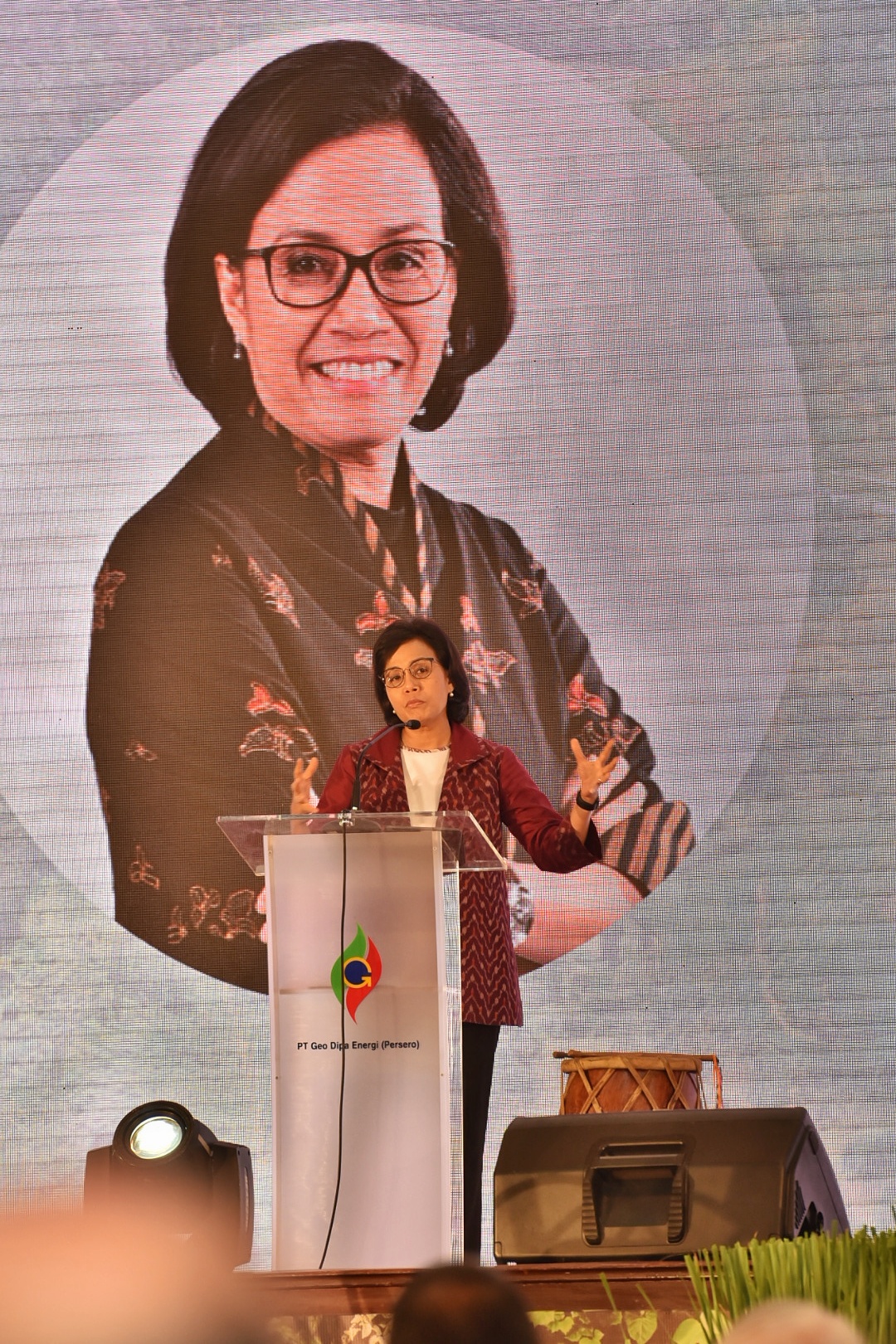 “Harus diakui mengembangkan panas bumi bukan hal yang mudah, ada resiko eksplorasi, isu lingkungan hidup, dan yang paling penting pihak yang akan overtaken listrik dari panas bumi tersebut di Indonesia yaitu PLN. Investasi geotermal memang tinggi di awal, namun semakin lama tentu hasilnya akan berpengaruh pada pos-pos lain seperti pos penurunan penggunaan BBM sebagai bahan bakar pembangkit listrik, sehingga saya harap tidak ada lagi yang minta subsidi untuk geotermal karena harga geotermal yang tinggi,” kata Sri Mulyani. “Mari kita mulai mewujudkan geotermal sebagai energy terbarukan di Indonesia sesuai kithahnya, sehingga mampu menciptakan energy security dengan baik,” ajaknya.