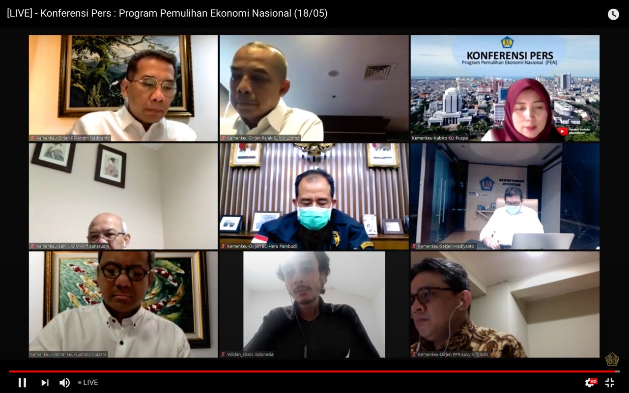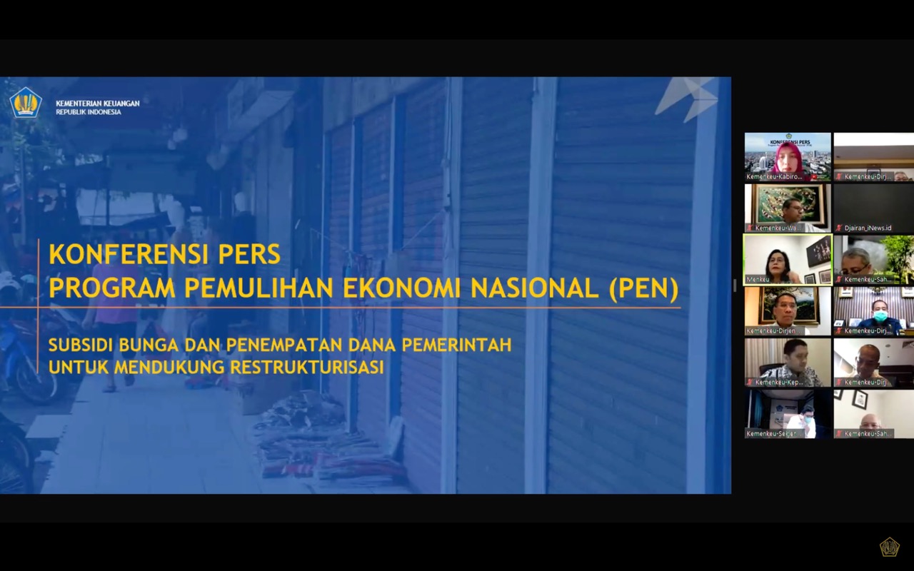 Jakarta - Menteri Keuangan Sri Mulyani mengatakan bahwa saat ini pemerintah sedang menyiapkan anggaran guna mendorong pemulihan ekonomi Indonesia melalui program pemulihan ekonomi nasional. “Saat ini Pemerintah sedang menyusun desain program penanganan dan pemulihan ekonomi melalui modalitas yang diatur dalam PP 23/2020,” ungkap Sri Mulyani saat menggelar Konferensi Pers terkait Program Pemulihan Ekonomi Nasional secara virtual pada Senin, (18/20) melalui kanal youtube Kementerian Keuangan. Program tersebut bertujuan untuk menjaga tingkat konsumsi masyarakat, mendukung dunia usaha dan mempertahankan investasi serta untuk mendukung ekspor dan impor.