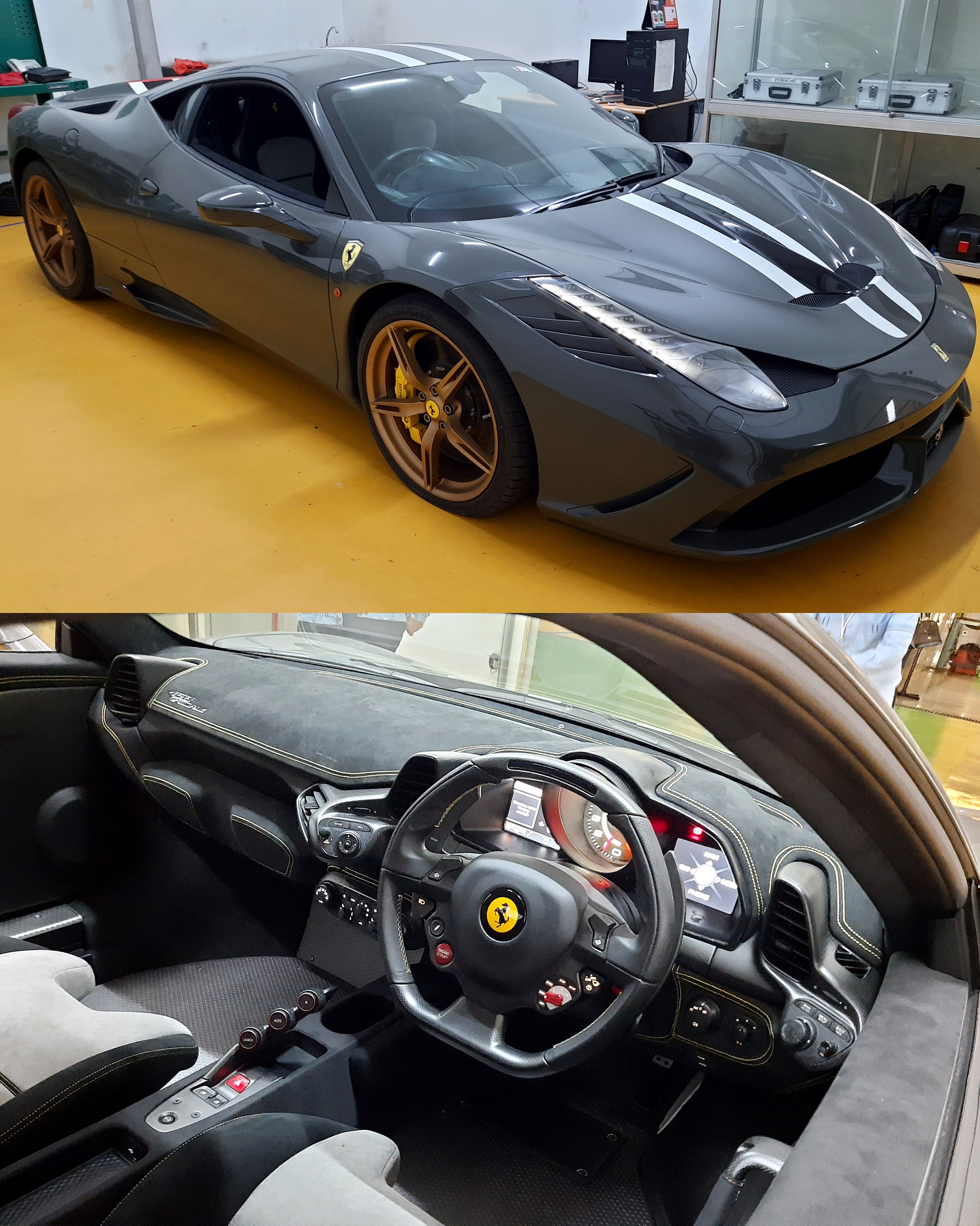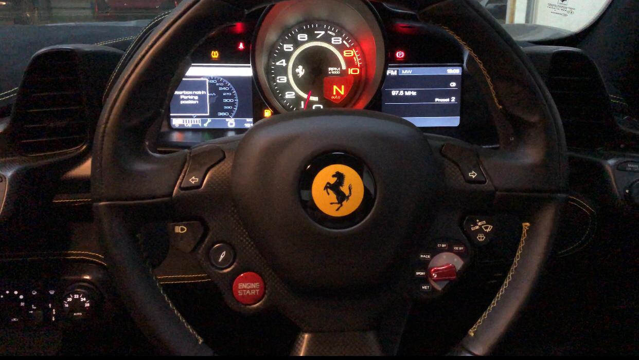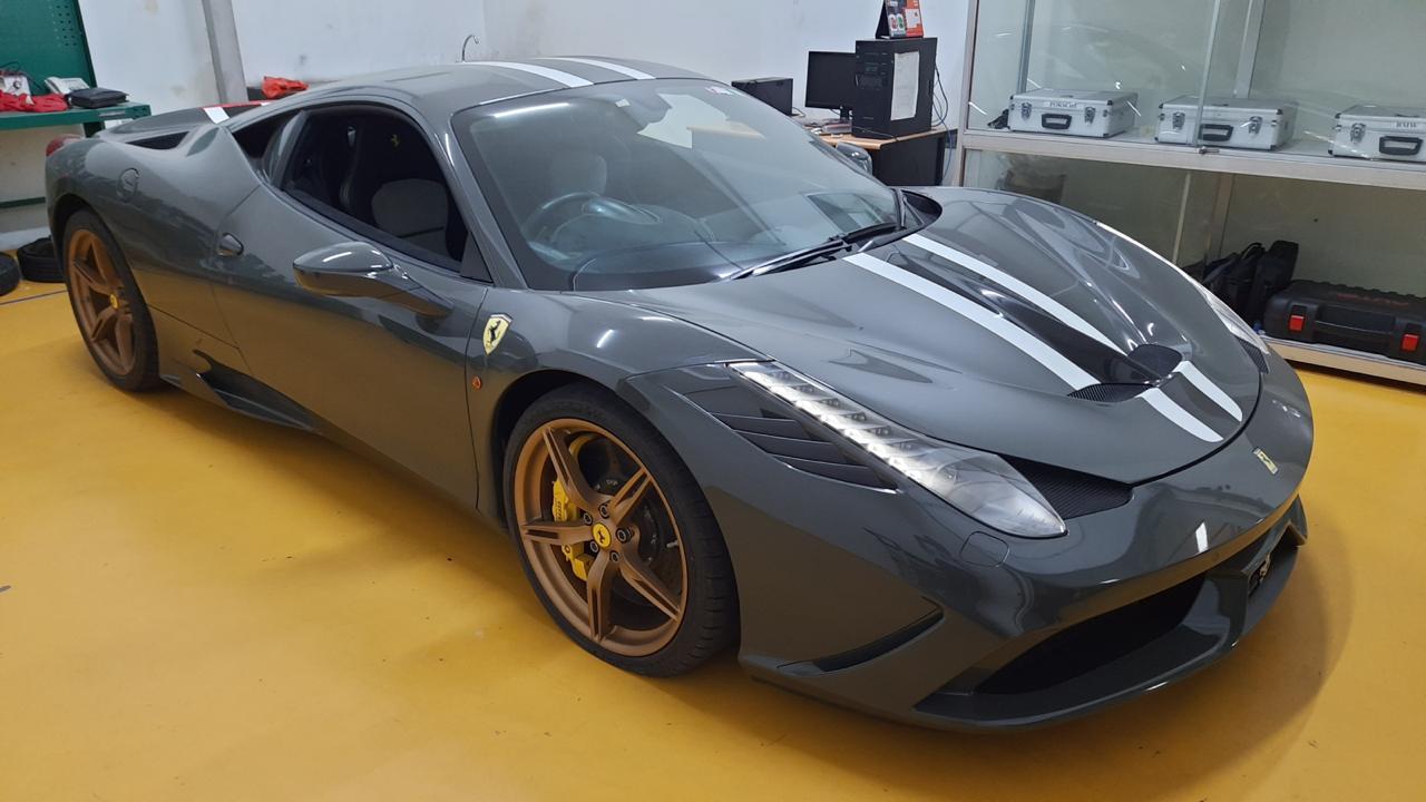 Ferrari 458 Speciale sendiri ditopang mesin V8 4.497 cc yang mampu menghasilkan tenaga 605 Hp pada 9.000 rpm dan torsi 540 Nm pada 6.000 rpm. Dengan kemampuan mesin konfigurasi V8 ini, dari 0-100 km/jam dalam dicapai dalam hitungan 3 detik saja, dan 0-200 km/jam dengan waktu 9,1 detik. Berdasarkan cek fisik, Ferrari yang diproduksi tahun 2014 dan berwarna gray ini memiliki stir kanan yang berarti standar indonesia dan mesinnya masih dalam kondisi hidup.