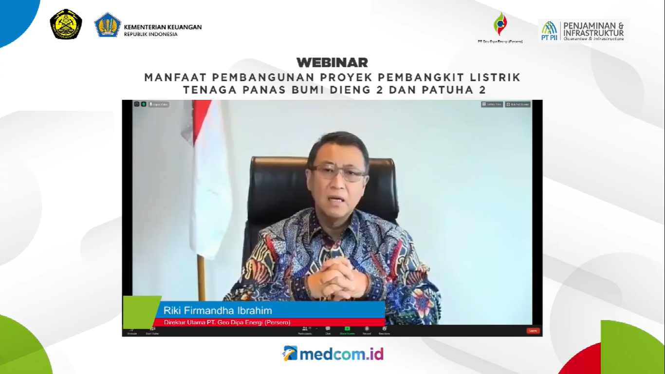 Jakarta – Meski di tengah pandemi, Kementerian Keuangan (Kemenkeu) terus berkomitmen untuk mendukung realisasi target bauran energi terbarukan pemerintah melalui sinergi tiga Special Mission Vehicles (SMV) di bawahnya, yaitu PT Geo Dipa Energi (Persero) atau GeoDipa, PT Penjaminan Infrastruktur Indonesia (Persero) atau PT PII, dan PT Sarana Multi Infrastruktur (Persero) atau PT SMI. Hal ini disampaikan oleh Direktur Kekayaan Negara Dipisahkan Meirijal Nur pada webinar Manfaat Pembangunan Proyek Pembangkit Listrik Tenaga Panas Bumi (PLTP) Dieng 2 dan Patuha 2, Rabu (19/8).