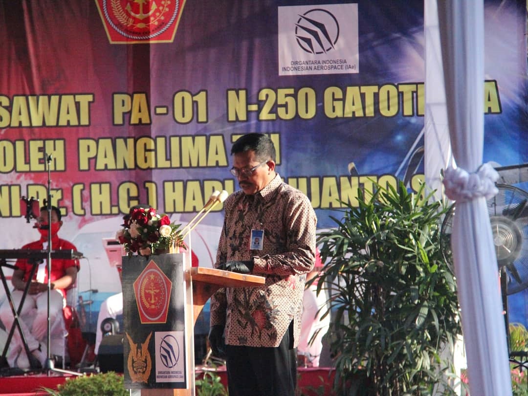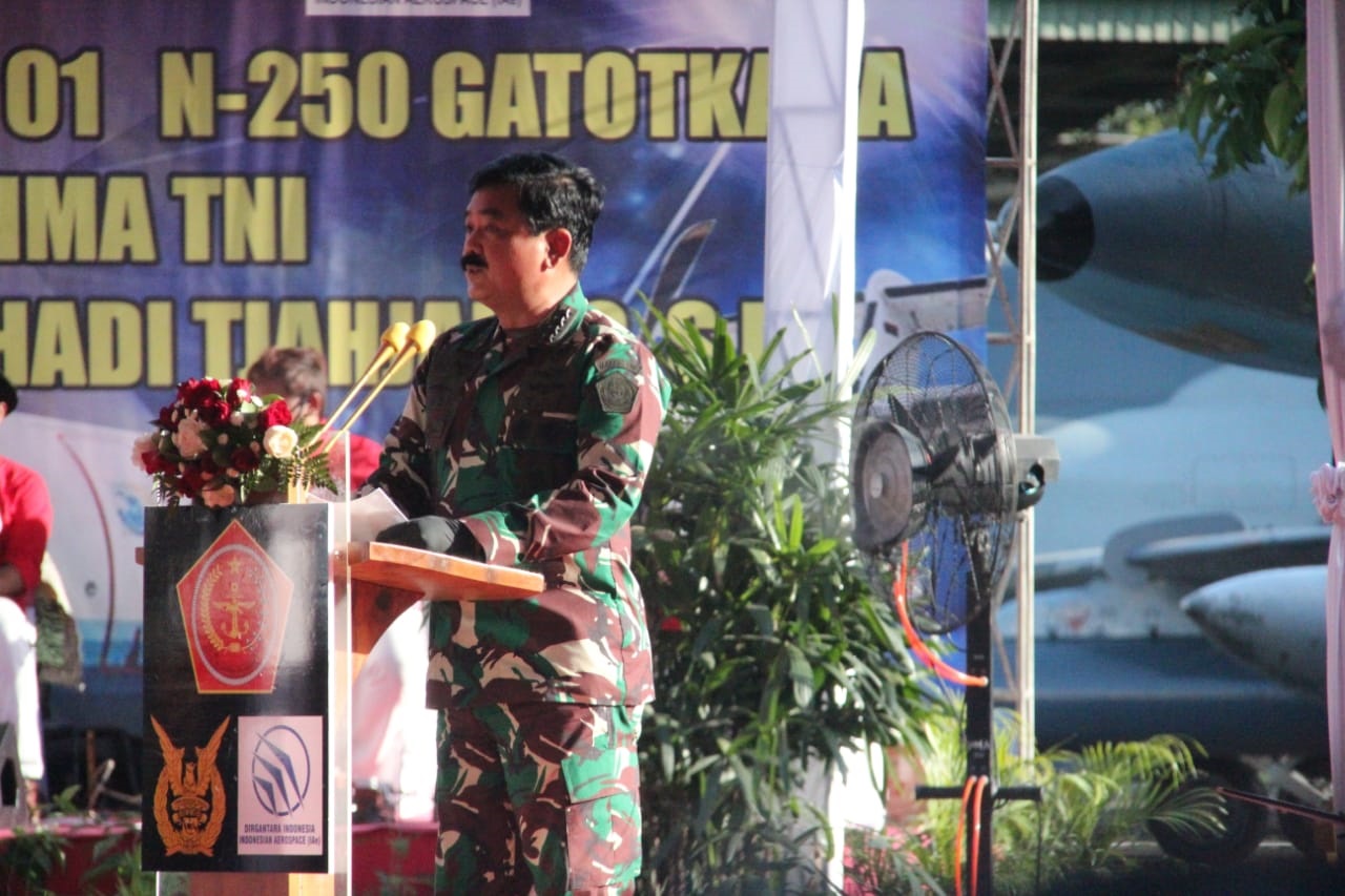 Dalam sambutannya, Panglima TNI menyampaikan bahwa penyerahan Pesawat N250 Gatotkaca ke Museum Pusat TNI Angkatan Udara Dirgantara Mandala Yogyakarta dimaksudkan untuk mengabadikan buah karya terbaik anak bangsa dalam pengembangan teknologi penerbangan. Ia mengaku, peresmian ini juga ditujukan sebagai bentuk penghargaan kepada perancang Pesawat N250 Gatotkaca, Bapak Teknologi Indonesia dan Presiden RI ke-3, B.J. Habibie, yang juga telah banyak berjasa mengharumkan nama bangsa Indonesia melalui karya-karya beliau lainnya. Panglima TNI berharap agar monumen Pesawat N250 Gatotkaca dapat terus menginspirasi generasi penerus bangsa akan kegigihan para pendahulu dalam menguasai teknologi kedirgantaraan.