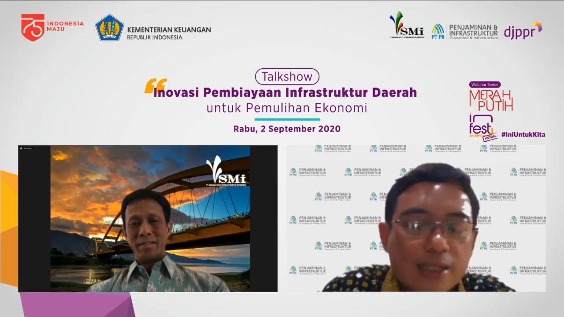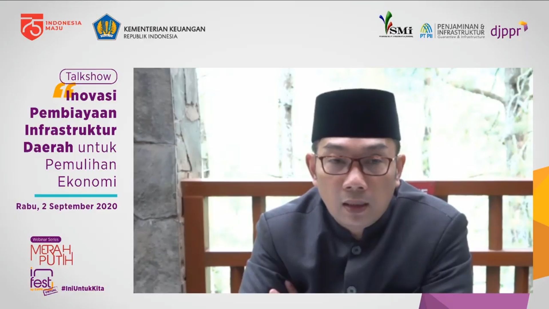 Gubernur Jawa Barat Ridwan Kamil, yang diundang sebagai salah satu narasumber di acara tersebut mengungkapkan bahwa perekonomian Jawa Barat yang sempat tersendat di tahun 2020 ini terbantu dengan adanya pinjaman PEN daerah. “Kami juga mendapatkan pinjaman PEN sekitar Rp4 triliun. Kami belanjakan Rp1,9T di tahun 2020 karena uang kami habis untuk Covid sehingga ekonomi tidak bergerak. Dengan adanya pinjaman dengan bunga 0% dari PT SMI kami bisa menghidupkan semua rencana yang sudah disepakati di lelang tapi hilang karena Covid,” ujarnya.