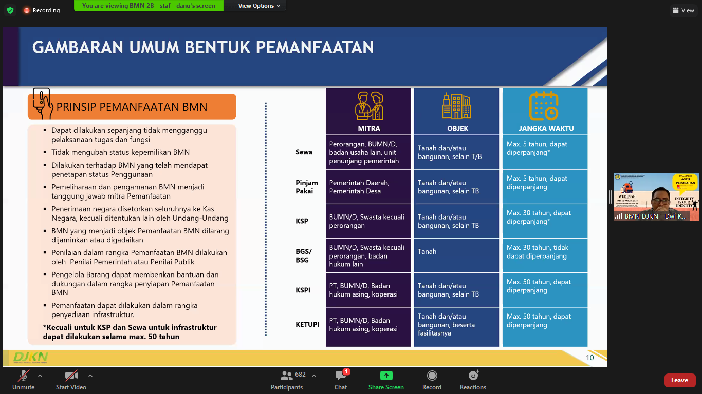 BMN IA Arif Widodo menyampaikan bahwa pada Pemanfaatan dengan bentuk Pinjam