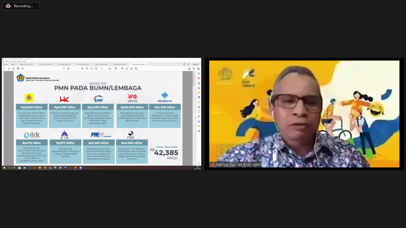 Jakarta - Tekanan yang diberikan oleh pandemi Covid-19 pada perekonomian Indonesia selama tahun 2020 mendesak pemerintah untuk terus mengakselerasi program pemulihan ekonomi dan melanjutkannya di tahun 2021. Oleh karena itu, pada APBN Tahun 2021, Pemerintah menganggarkan pembiayaan investasi dengan penyertaan modal negara (PMN) sebesar Rp42,385 triliun kepada delapan Badan Usaha Milik Negara (BUMN) dan satu lembaga. Adapun pelaksanaannya dimandatkan melalui Kementerian Keuangan c.q. Direktorat Jenderal Kekayaan Negara (DJKN).
