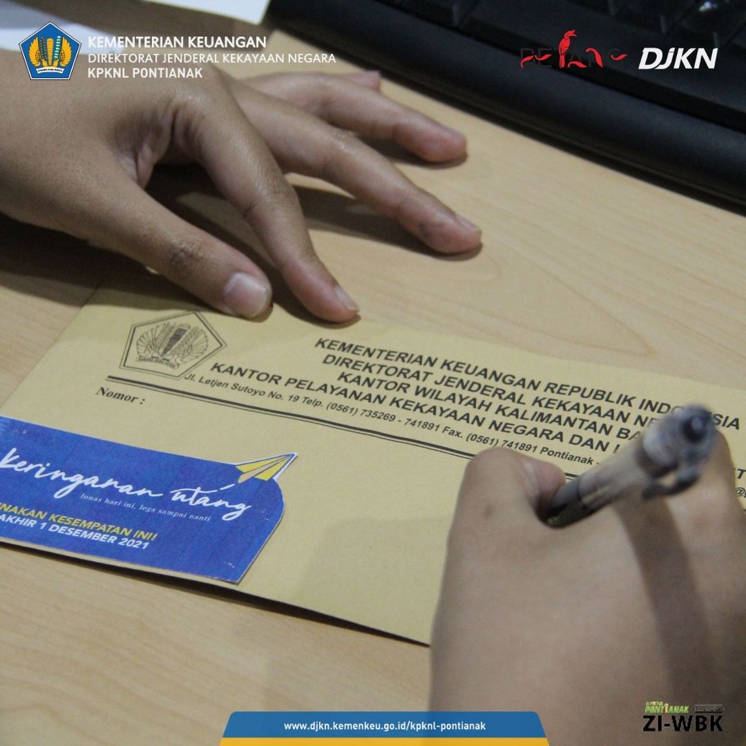 Pontianak - Kantor Pelayanan Kekayaan Negara dan Lelang (KPKNL) Pontianak memiliki tugas menyelesaikan Piutang Negara yang telah diserahkan pengurusannya kepada Panitia Urusan Piutang Negara (PUPN) sesuai dengan ketentuan peraturan perundang-undangan di bidang piutang negara. Saat ini, sebagaimana telah diketahui bersama bahwa Pemerintah sedang gencar mengajak masyarakat yang merupakan debitur kepada negara untuk bersama-sama mengikuti Program Keringanan Utang.