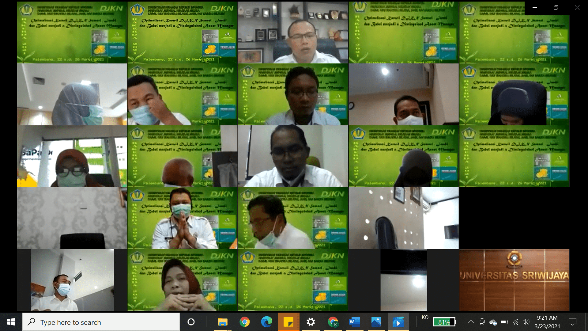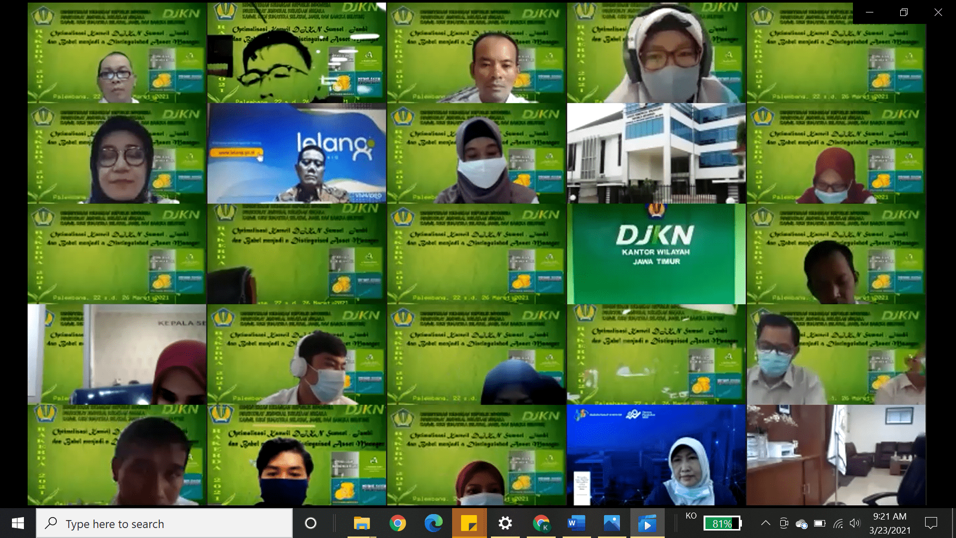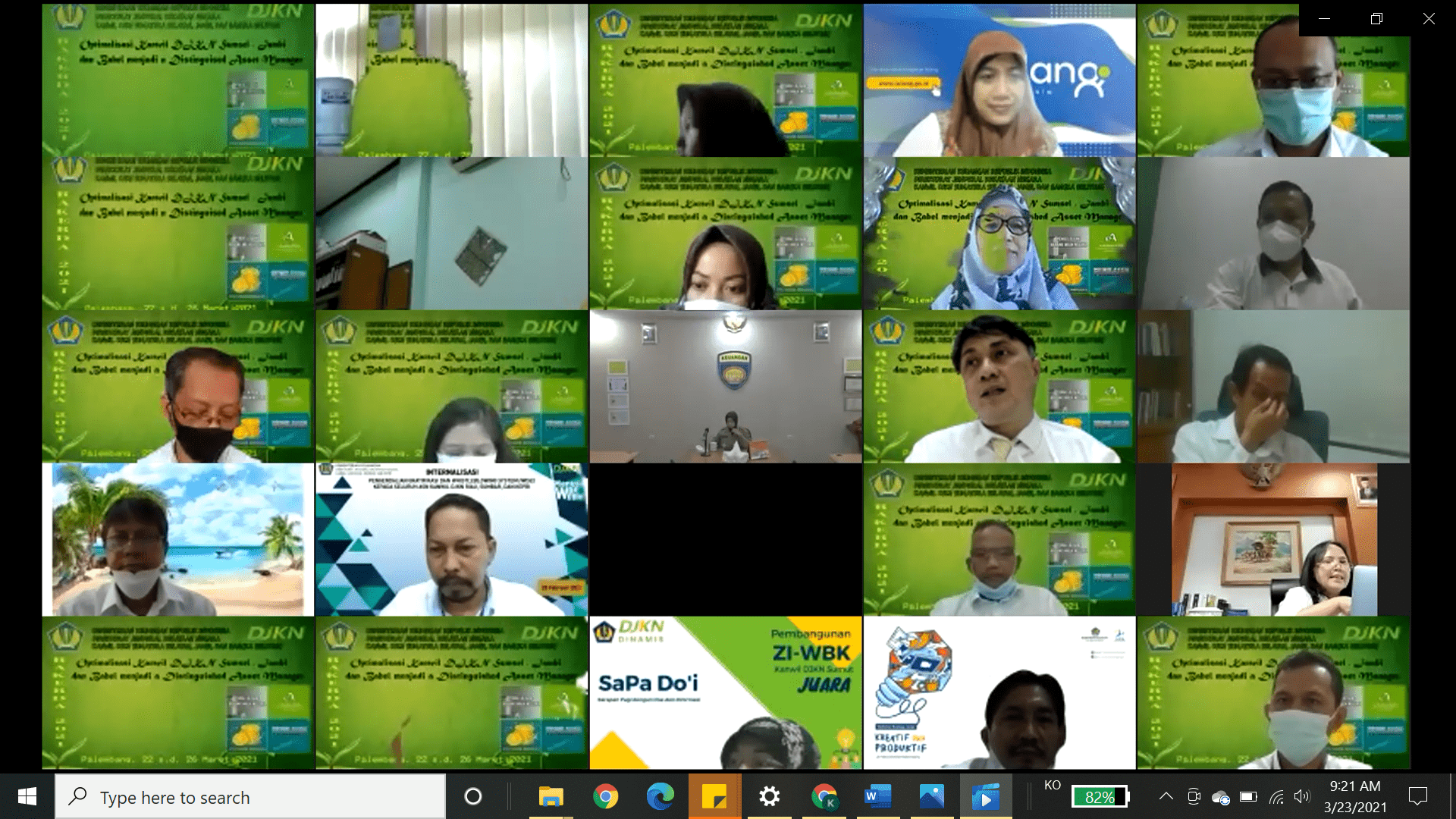 Kepala Kanwil DJKN SJB Surya Hadi mengucapkan terima kasih dan apresiasi atas kehadiran para undangan yang telah menyempatkan waktu untuk mengikuti acara pembukaan Rakerda. Surya juga mengatakan bahwa Kanwil DJKN SJB saat ini sedang melakukan pembangunan Zona Integritas (ZI) menuju Wilayah Bebas dari Korupsi (WBK). Pencanangan ZI WBK telah dilakukan pada 12 Februari 2021.