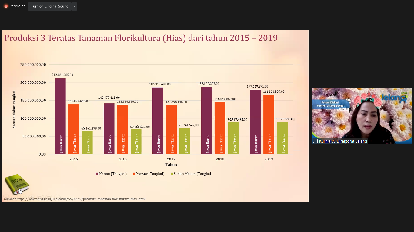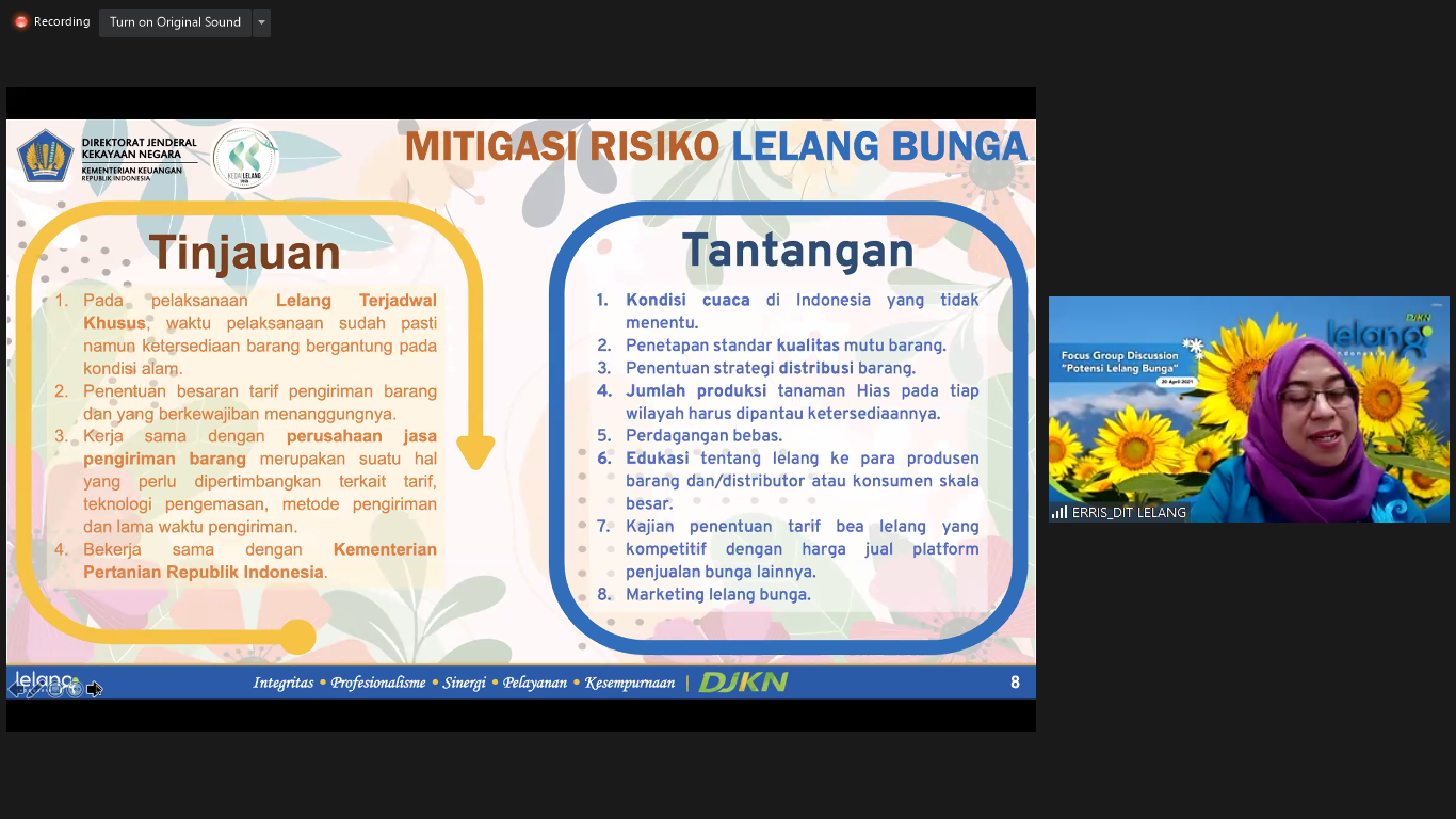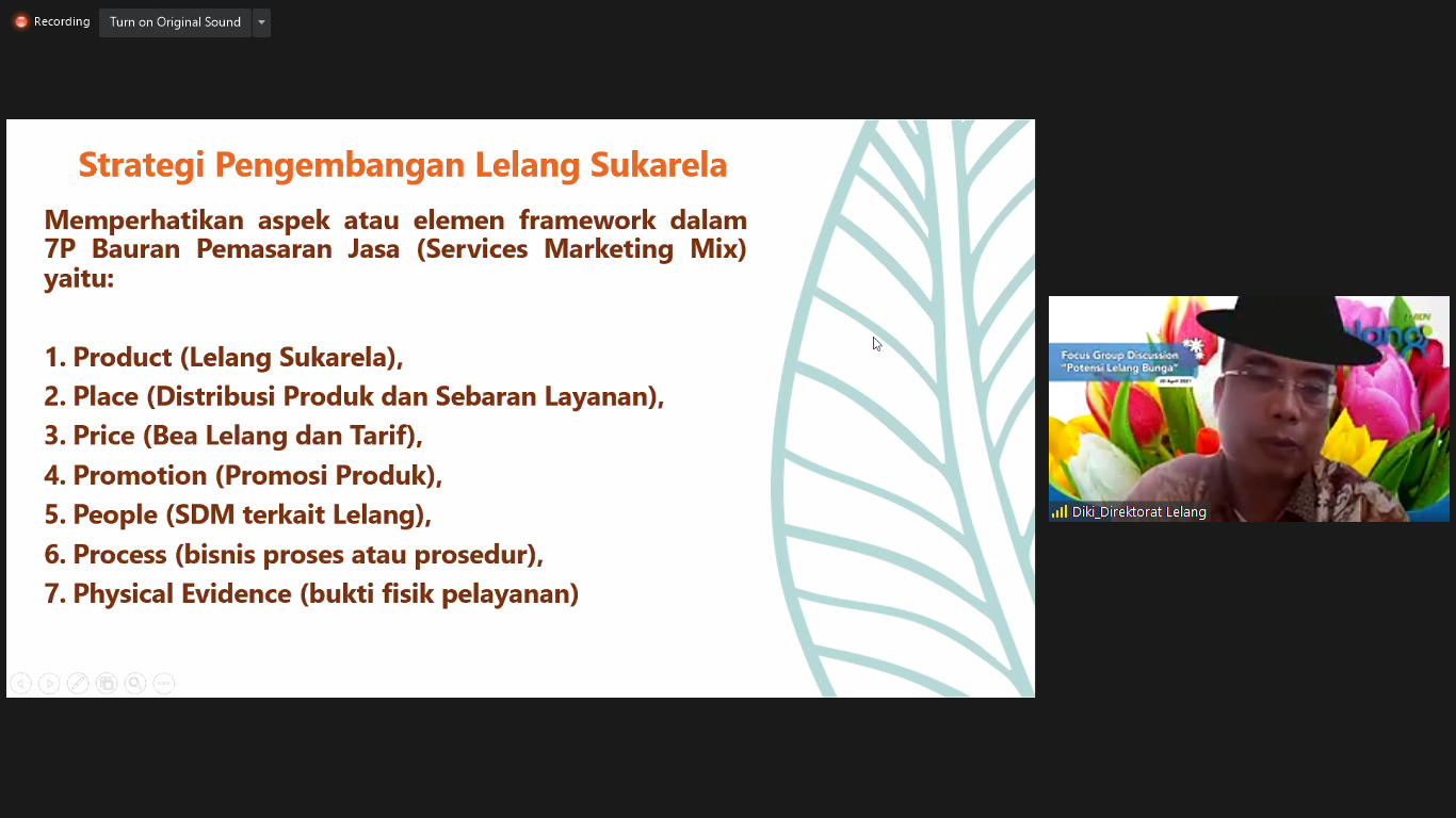 Cahyanti pada forum diskusi potensi lelang bunga secara virtual pada Selasa