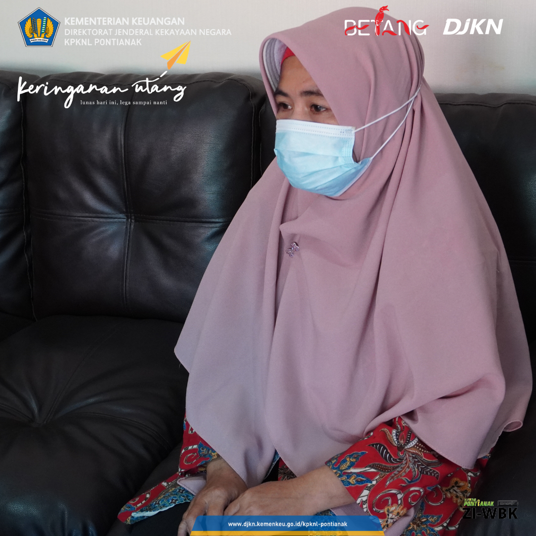 Lisa merupakan salah satu Debitur yang telah memanfaatkanprogram keringanan utang periode pertama pada KPKNL Pontianak. Selain bincangsantai, pada kesempatan yang sama, Lisa mendapatkan Surat Pernyataan PiutangNegara Lunas (SPPNL) secara langsung diserahkan oleh Kepala KPKNL Pontianak.
